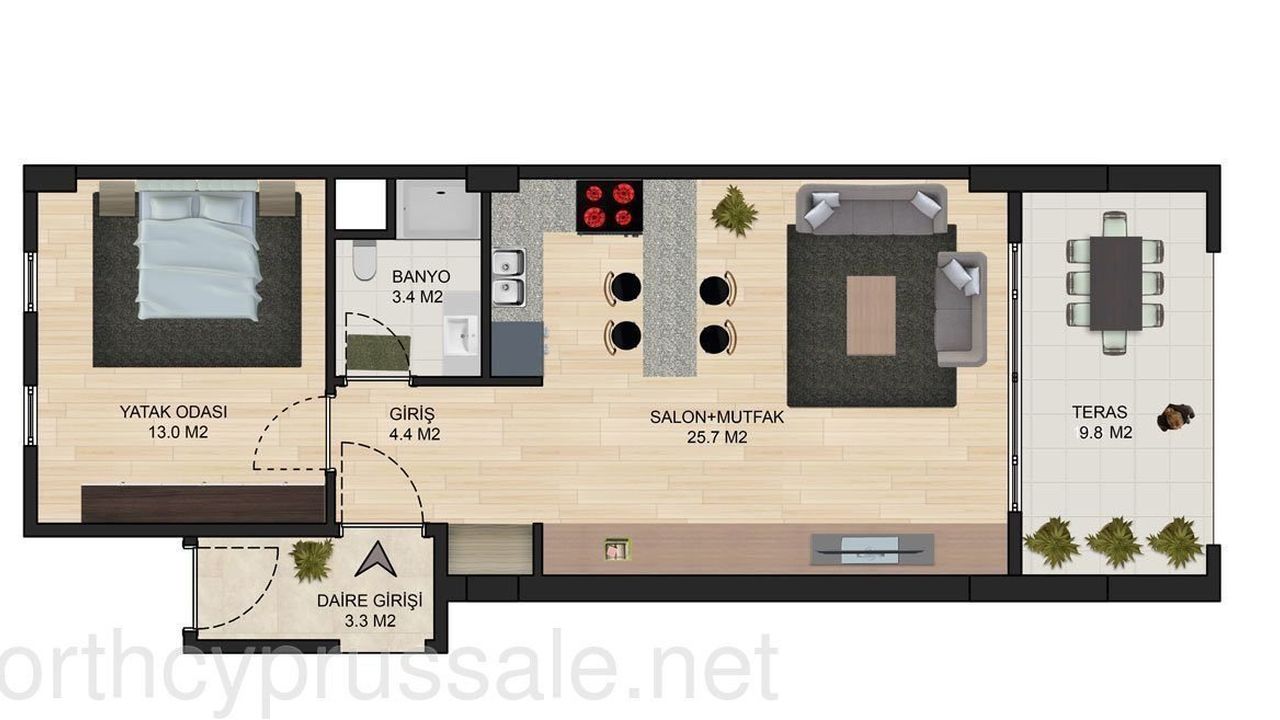 Апартаменты 1+1 - 67 м2 groos / 56,3 net
