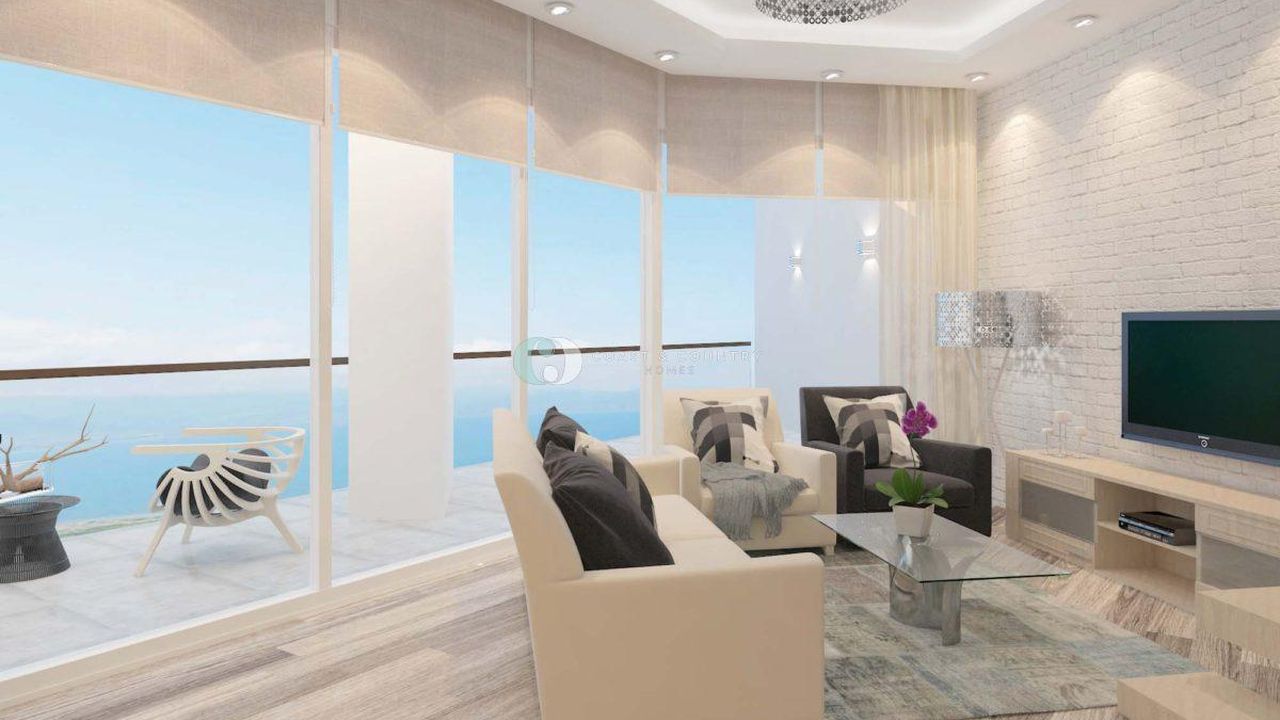 Расположенный на 9м этаже этот двухуровневый пентхаус включает в себя 2 спальные и 3 ванные комнаты. Апартаменты выполнены в современном дизайне – гостиная и кухня свободной планировки. Общая жилая площадь составляет 108 кв.м. и включает просторную террасу 14 кв.м. с прямыми видами на море и горы!