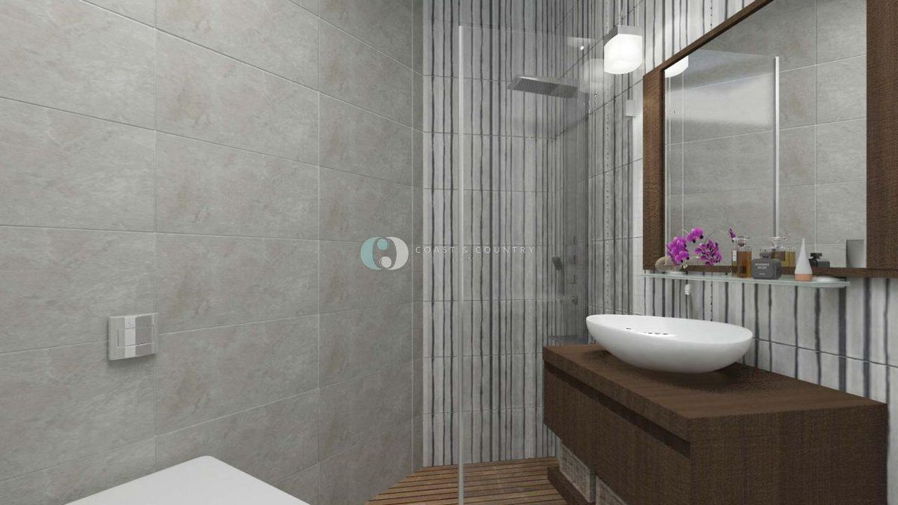 Обе спальные комнаты могут похвастаться собственной ванной комнатой, в то время как гостевой туалет расположен на нижнем уровне. Окна от пола до потолка гарантируют изумительные виды!