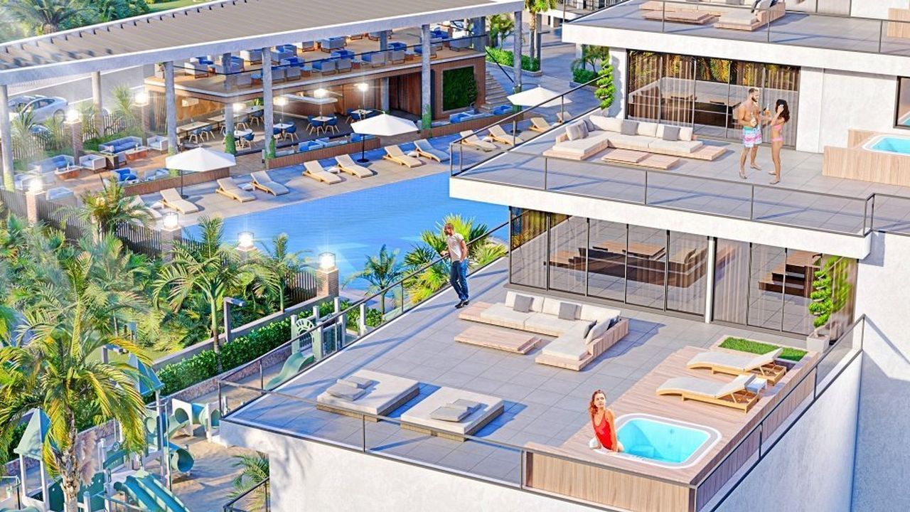 Состоящий из двух блоков, этот современный комплекс предлагает все удобства для полноценного отдыха или проживания - общий бассейн, ресторан / кафе-бар, лобби, тренажерный зал, игровую комнату и многоцелевой зал на первом этаже, а также бар / ресторан на крыше с 360 градусов панорамного вида.