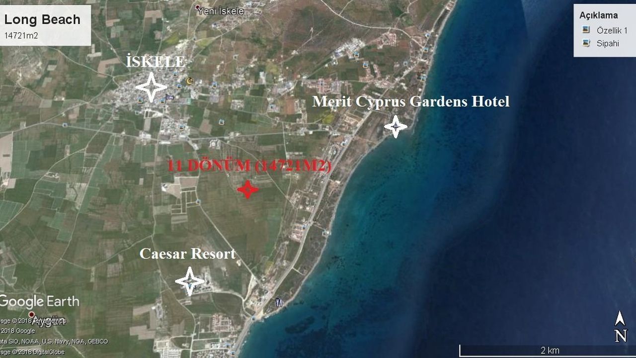 Наши 11 акров земли, расположенные в Искеле, Лонг-Бич имеют равноценный титул, цена в £35 000 ха акр. С видом на море Равноценный титул Разрешение на строительство Близко к Дороге