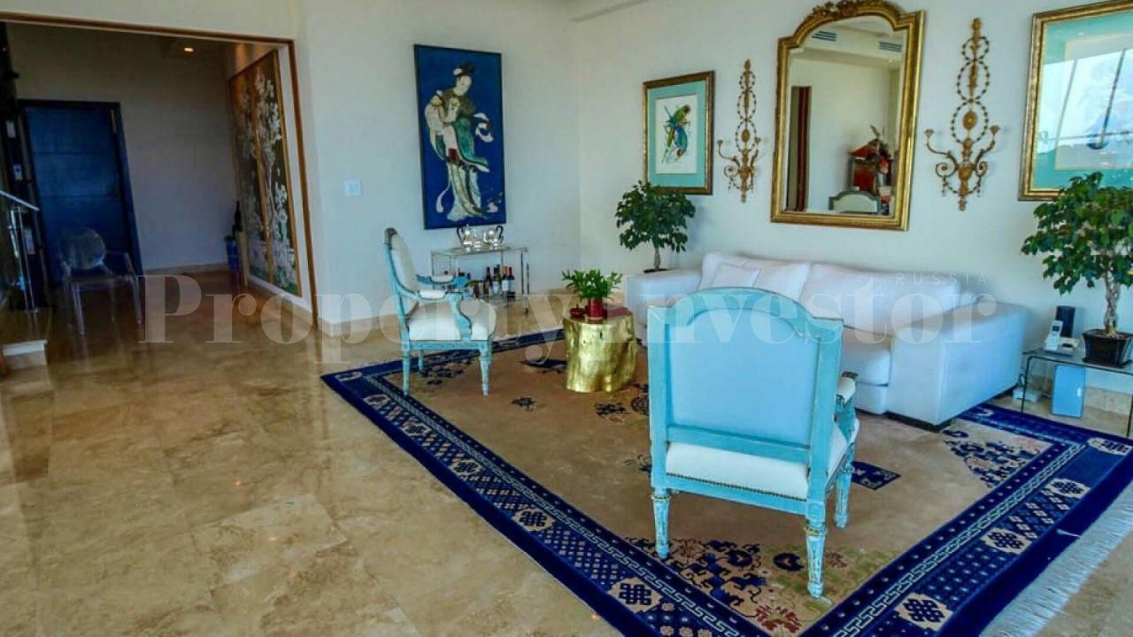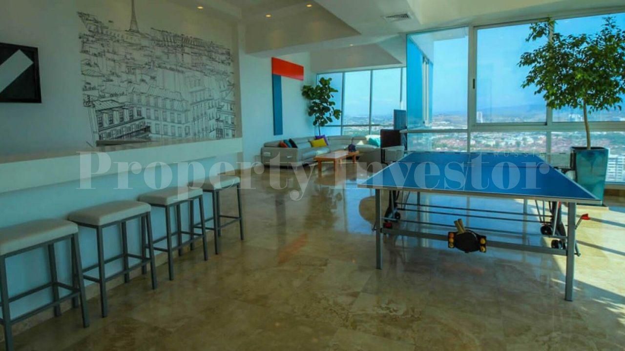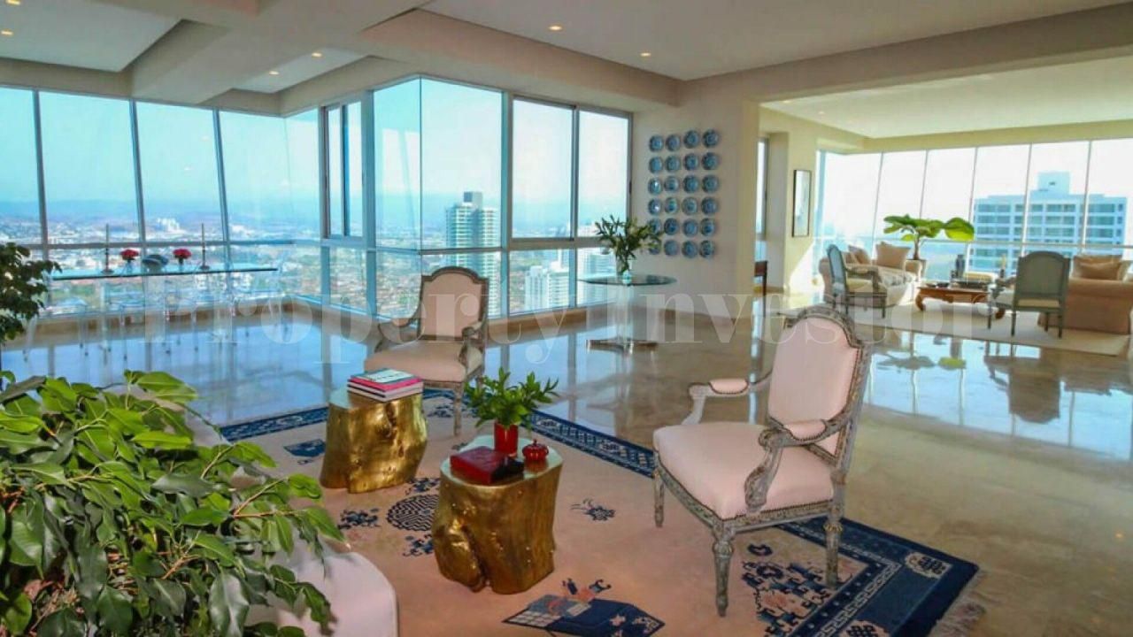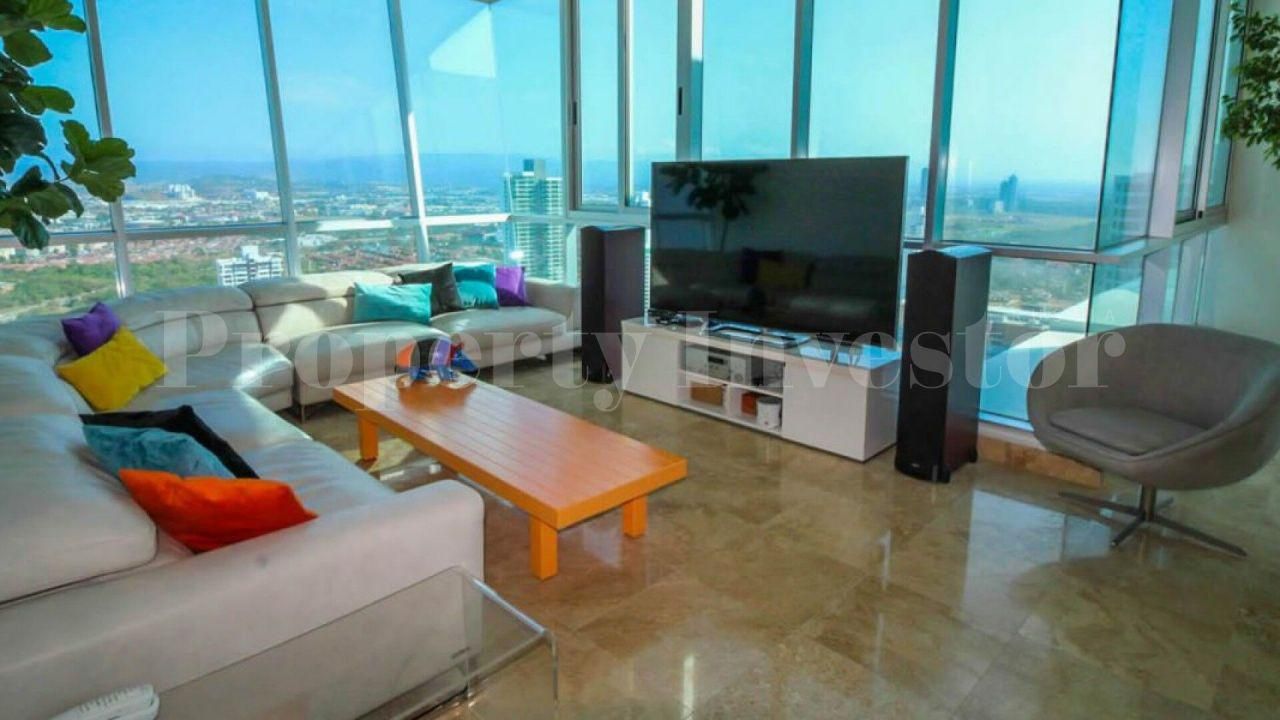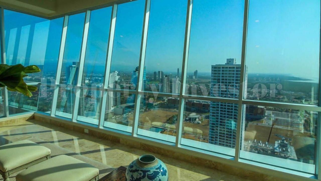 Впечатляющая 4 Спальня Трехэтажный пентхаус Oceanview с бассейном Rooftop и террасой для продажи в городе Панама, Панама Изысканная 4 спальня, четырех-и-полная ванная комната, трехэтажный пентхаус с более чем 662 м2 (7,000 кв. футов) необустроенных видов на горах, город и Тихий океан Панамы. Это изысканное свойство является определение роскоши в Панаме, похвастаться террасой 65 м2 (700 кв. футов) и частной зоной бассейна полностью окружено стеклом. Этот верхний уровень также включает в себя четвёртую спальню, полностью оборудованный L-образный влажный бар и большой алков, который может быть преобразован в 5-ю спальню или используется, как в настоящее время для развлечения. Второй этаж жилых помещений включает в себя три дополнительных спальни с en-suite плюс частный den и отдельное офисное пространство. В главной спальне есть ванна для двоих, отдельный душ, климат-контролируемый-волокно-в шкаф и подметные виды на окружающий пейзаж. Мастер-люкс впечатляет окнами с напольным покрытием, уложенными на 45 градусов и включает в себя встроенные шкафы, светодиодные фонари, встроенные в обычай современный дизайн потолок, Хантер Дуглас удаленно-контролируемые чернаты и спикеры бренда Sonos во всем. В главной ванной комнате есть пользовательский мрамор и гранит на всей с моен-ремонтов и двух человек сакральная ванна с видом на парк. Напротив мастера вы найдете пару просторных спален каждый с большими шкафами и ванными комнатами. Нижний уровень недвижимости открывается непосредственно в красивую гостиную и столовую зону с элегантными дроповыми потолками и звуковой системой Sonos. Идеально подходит для развлекательных гостей или отдыхающих! Аджацентр - это кухня, оснащенная нержавеющей стальной техникой, множеством хранения и завтраком в полдень — и на сторону, вы также найдете жилье, которое комфортно спит два. Владельцы