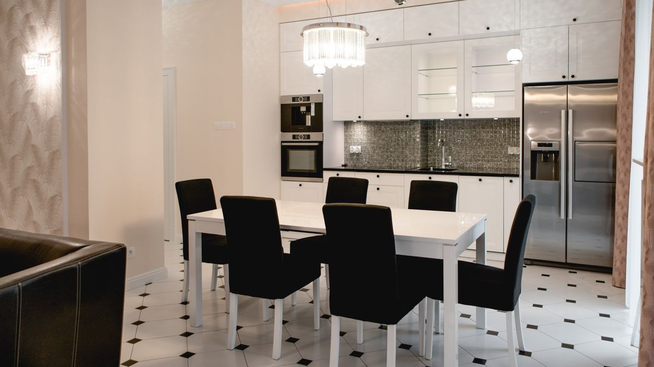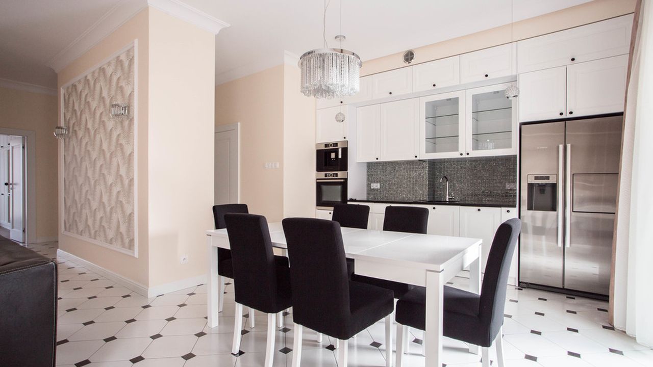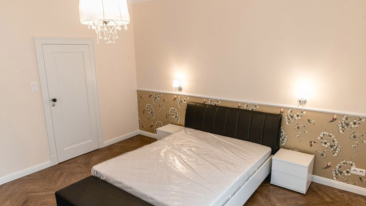 The apartment is freshly finished and fit-out to a very high standard in Art Deco style. The property measures 103,5 m2 and comprises of two bedrooms, large living room with open kitchen, one and a half bathrooms. The apartment has central air condition system.