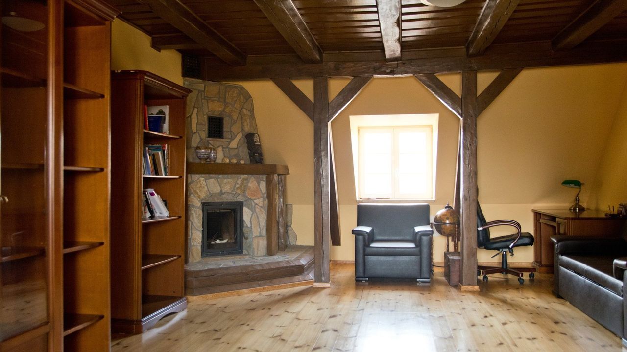 На 2 этаже: гостиная с камином 44,75 м2, спальная комната 47 м2, кабинет 15 м2, ванная комната с прачечной 16,5 м2.