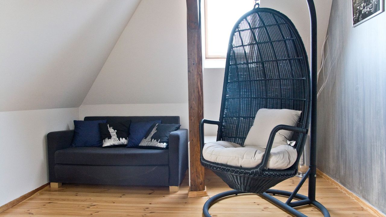 Квартира расположена в частной отреставрированной вилле, 1906 года постройки, с садом 500 м2 и прекрасным видом на парк в районе Aniołki. Тихое зеленое место, в непосредственной близости к центру Гданьска. Рядом все необходимое для комфортной жизни: магазины, кафе и рестораны, школы и детские сады, театры и развлекательные центры, банки, транспорт (трамвай и автобус).