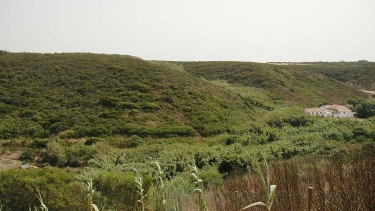 Алентежу Монте с 100000 м2 (10 акров) и дом в руинах, вдоль барьера Санта Клара, в муниципалитете Odemira. Дорога с подключением до Албуфейры, в Алгарве, 60 км и 20 км от Вила-Нова-де-1000 источников. (DO-MI8102)