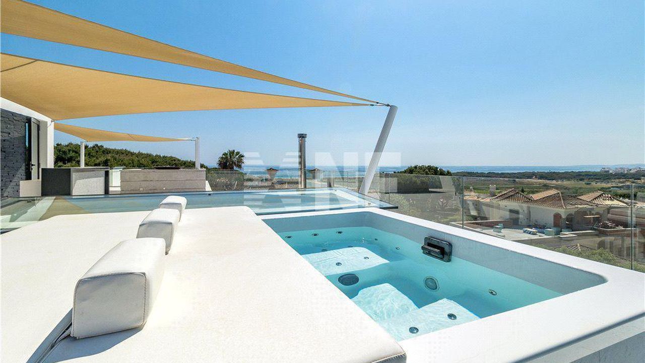 Новая современная вилла с видом на море расположена в Вале-ду-Лобо. Вилла включает 4 спальни, 8 ванных комнат, офис, полностью оборудованную кухню, просторную гостиную, игровую комнату, прачечную, гараж. На крыше есть терраса с гостиным уголком, барбекю и джакузи. В ландшафтном soot.rsi18051