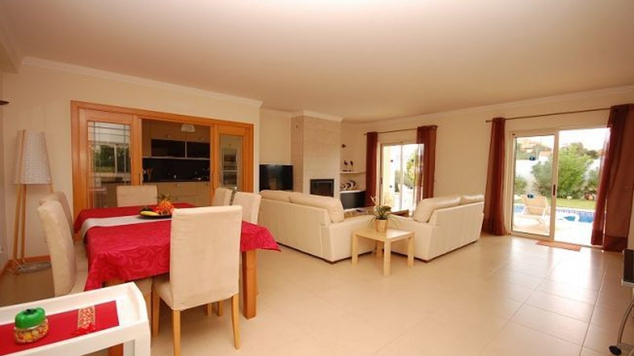 Вилла расположена в тихом жилом районе, с 4 спальнями (3-комнатой Com подогрева), 4 ванные комнаты, 1 просторная гостиная/столовая комната с камином и большой полностью оборудованной кухней с раздвижными дверями, для доступа к столовой.
