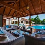 На участке площадью 2900 м2 находятся два бассейна (для детей и большой взрослый), ландшафтные сады, множество крытых террас, зона барбекю, лаунж-зона с сауной, тренажерным залом и санузлом.