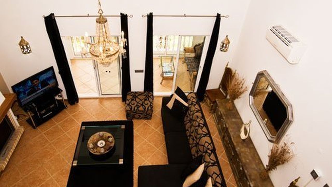 3 жилых этажа + терраса для загара, барная зона на крыше, 6 спален (12 кроватей), 2 гостиных и 2 кухни на разных этажах, столовая, 3 ванные комнаты + 4 санузла, крытый гараж, прачечная, кладовки, встроенные шкафы, камин, круглогодичный бассейн с подогревом, зона барбекю, игровая комната с бильярдным столом,кондиционеры, закрытая терраса по периметру дома, свой сад, рядом с домом открытая свободная парковка.