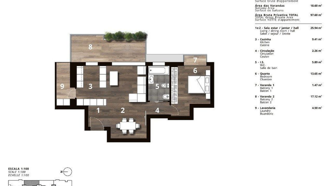 Эти высококачественные апартаменты, завершение которых намечено на ноябрь 2021 года, будут включать: 1 спальню с гардеробной, ванную комнату, гостиную / столовую, современную оборудованную кухню, прачечную и 2 балкона.