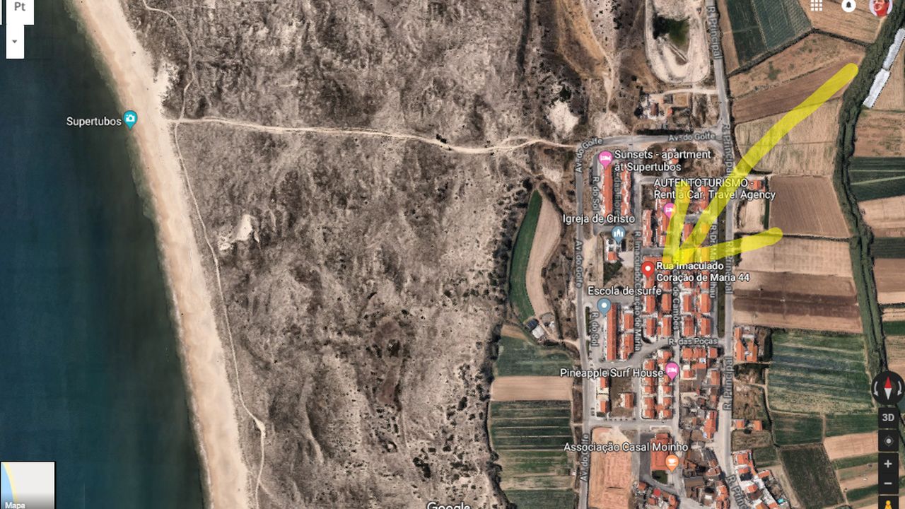 Прямой доступ к полупустынному пляжу, граничащему с Casal do Moinho, морским побережьем, отделенным от деревни дюнами, и в нескольких сотнях метров от Praia dos Supertubos в Пенише (известный на международном уровне своими трубчатыми волнами, лучшие «трубы» в европейских морях) и в нескольких сотнях метров от пляжа Консоласао (известный накопленным йодом в сочетании с другими природными условиями, для лечения заболеваний ревматического и костного происхождения).