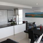 Exists of: spacious living room with open, modern kitchen that has an oven, fridge,