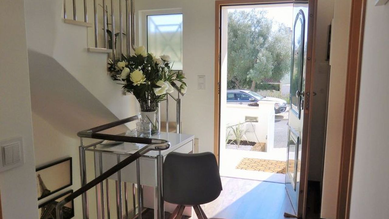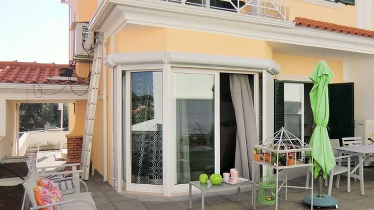 Апартаменты и дома для продажи дом 3 спальни двухквартирных, новый + 1, с частным патио/садом. В Эшторил закройте доступ в отель и A5 школу. 0 этаж: прихожая, гостевой туалет, полностью оборудованная кухня, гостиная с дровяной печи и доступа к двери в сад газоном. Флигель с барбекю. 1 этаж: люкс и две спальни с общей ванной комнатой. Подвал: большой гостиной или спальни с ванной комнатой. 3-гараж на земле -1 с прямым доступом к дому. Все спальни со встроенными шкафами. Тепловой насос вода Отопление, дровяная плита, Центральный вакуум, кондиционирование воздуха, бронированные перевозчика. Тихий жилой район с очень легким доступом к A5 и Эшторил, пляжи, и т. д. Транспорт в порт.