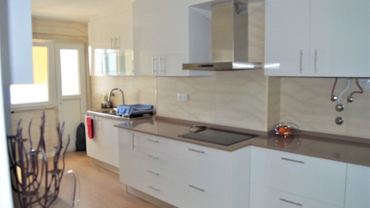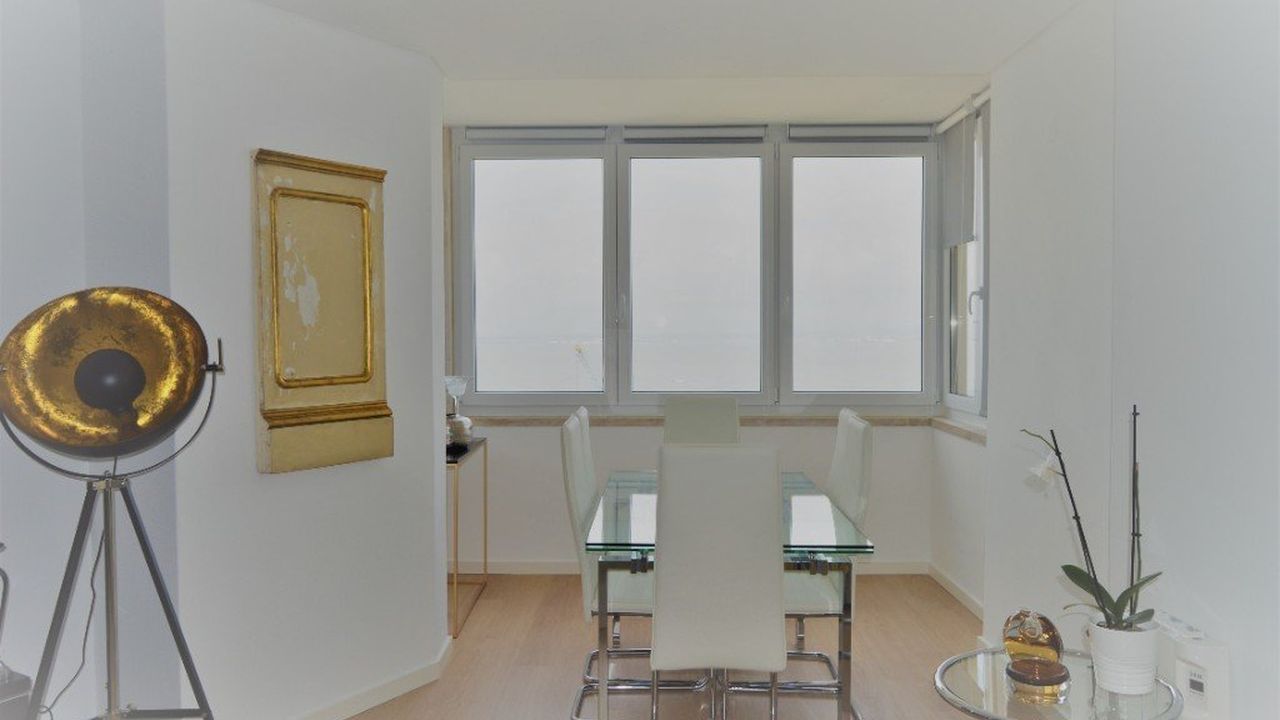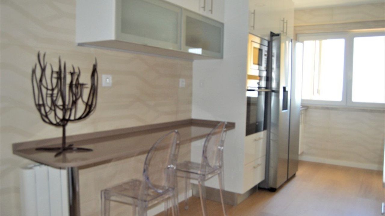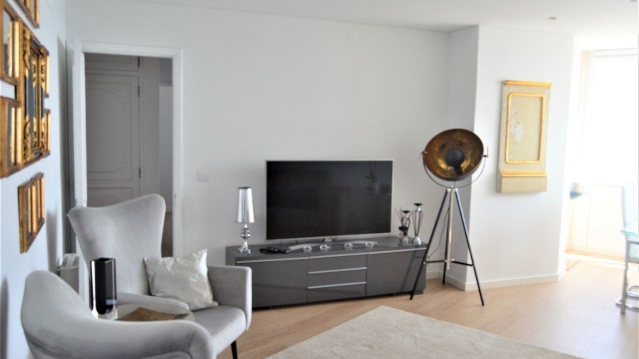 В квартире: большая гостиная с видом на реку Тежу, три спальни со шкафами, одна из которых была переделана в офис, а другая с балконом, две ванные комнаты, кладовая, просторный шкаф для хранения вещей и кухня с техникой Siemens.