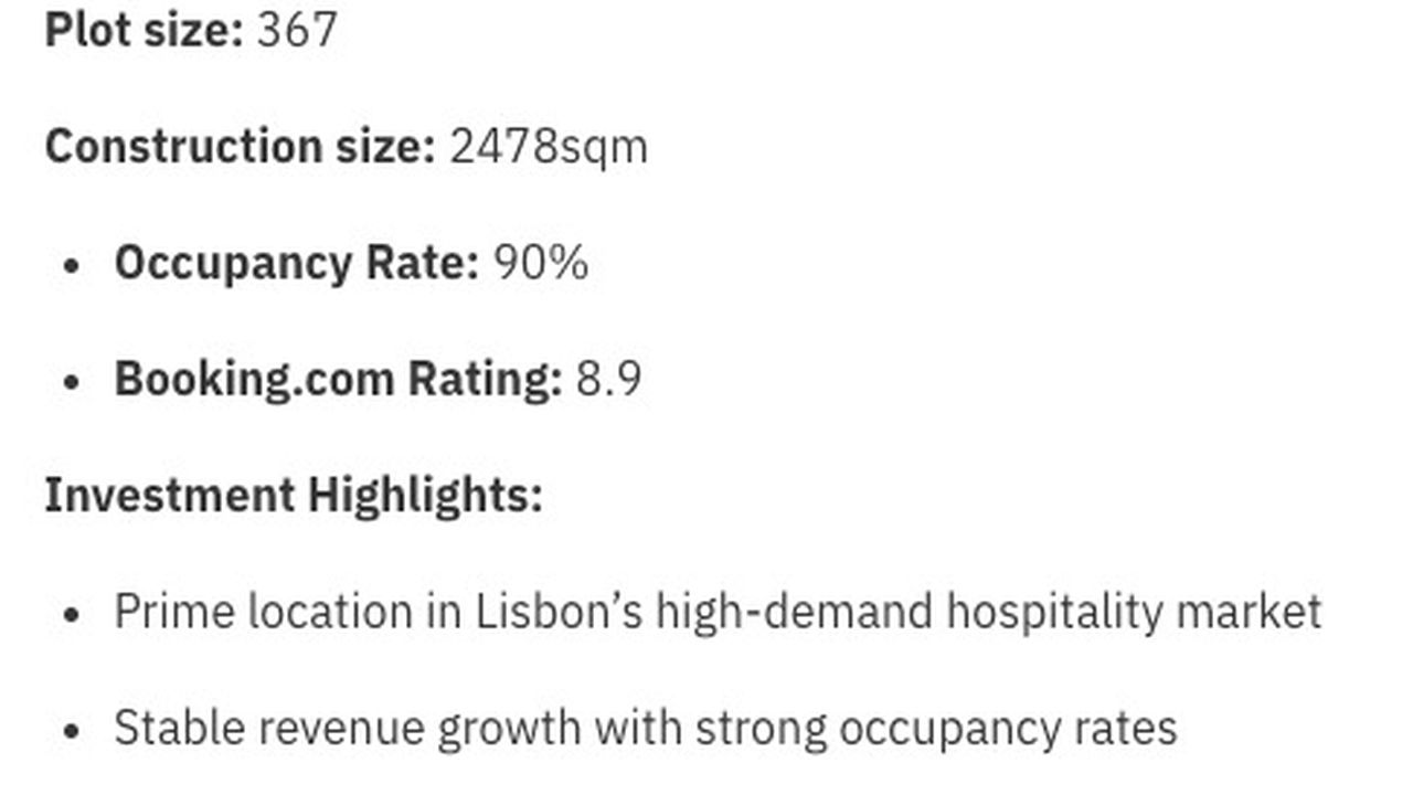 Выгодное расположение на востребованном гостиничном рынке Лиссабона