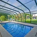 Центральное отопление, прачечная, сигнализация, система видеонаблюдения, гараж и подсобные помещения. Красивая ухоженная территория с небольшим прудом, крытый бассейн.