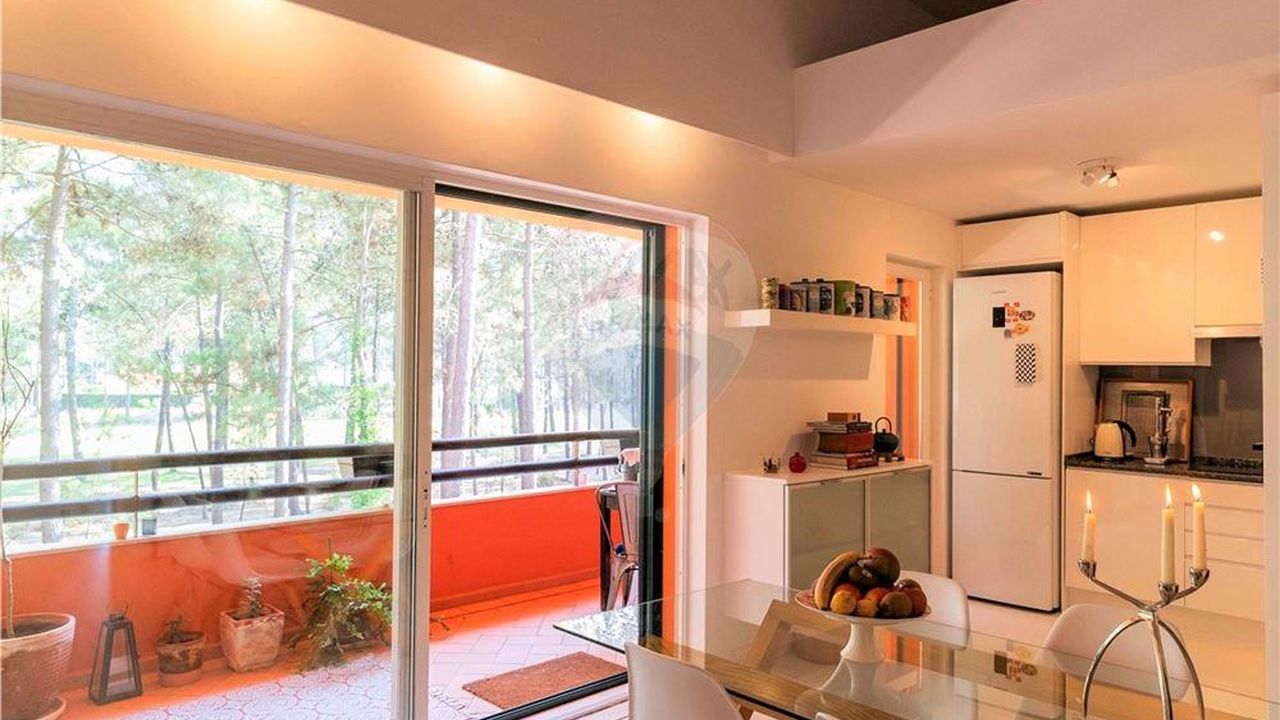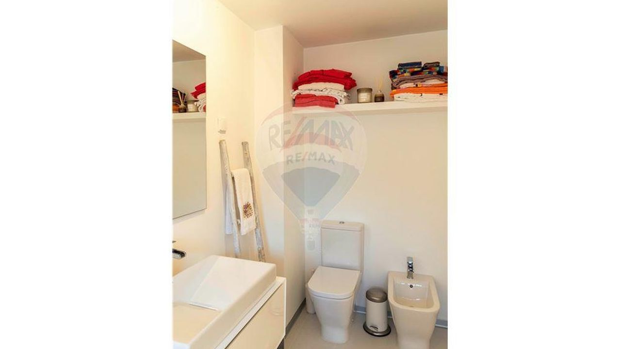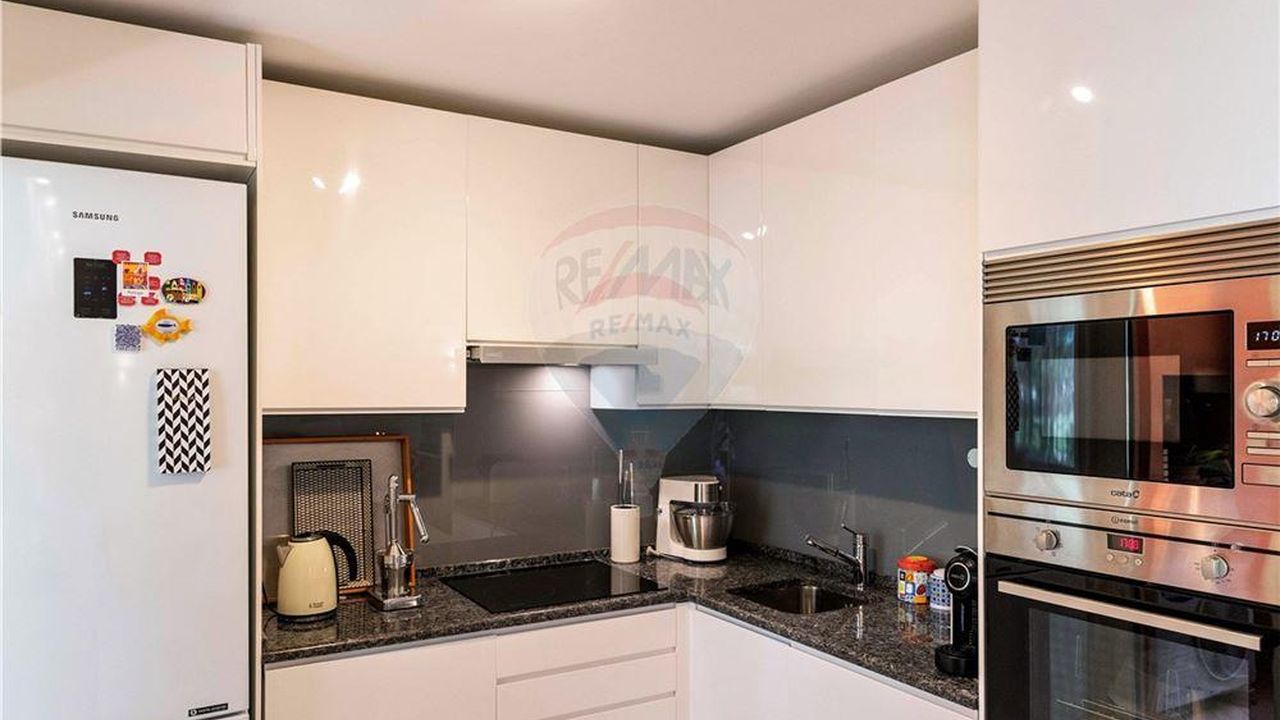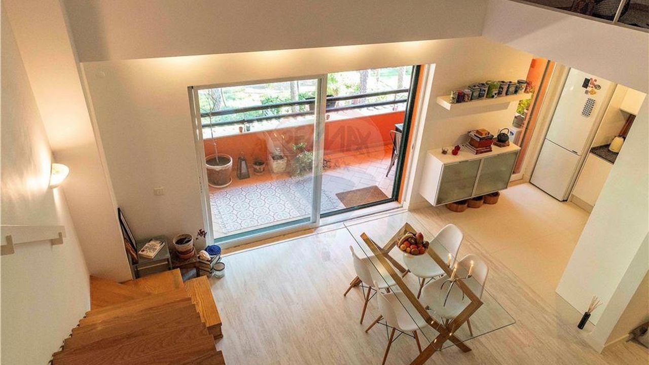 Квартира T1 +1, с широким антресолью, полностью отремонтирована, очень солнечная, с видом на озеро и гольф. Два балкона, один с барбекю, оборудованная кухня и кондиционер.