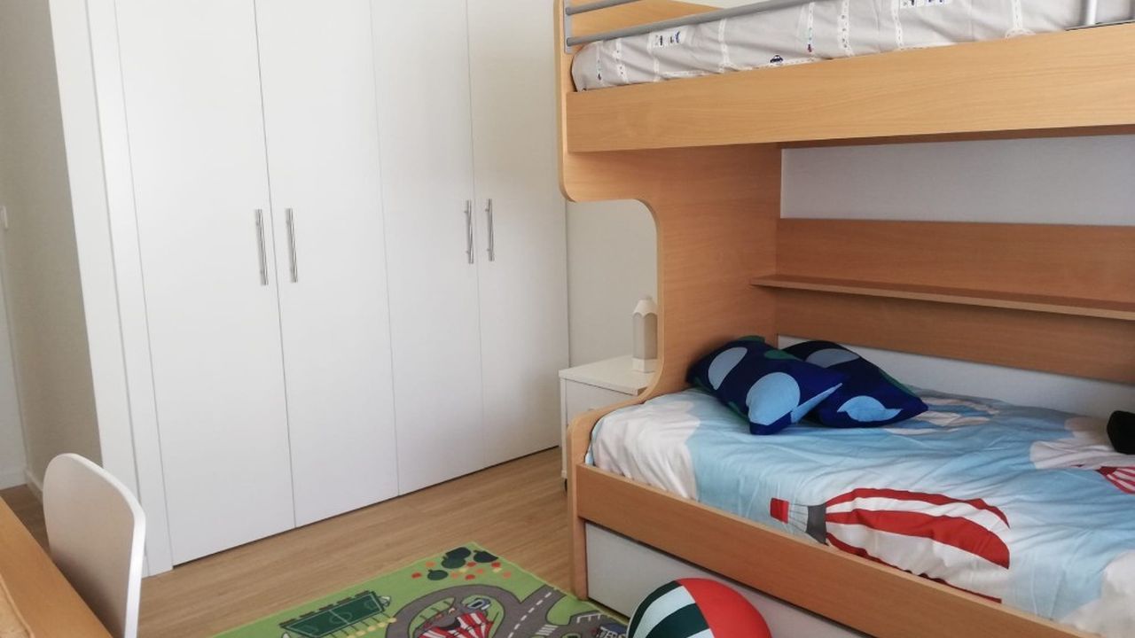 Квартира состоит из подвесного потолка с светодиодами, лакированных межкомнатных дверей белого цвета, видеодомофона, кондиционера, двери повышенной безопасности, солнечных батарей, электрических жалюзи и двойного остекления.