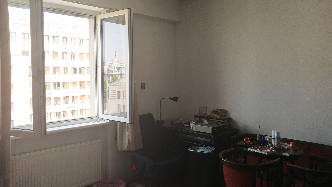 Apartment in very central Bucharest zone, 2 rooms - living and bedroom, kitchen, storage. It can host 4 people. It is next to kilometer 0 of the capital city of Romania, near University Square and University metro station. It has a very good view to some symbols of the city, such as the Intercontinental Hotel. The building is from 1963 but it is strong, not on the seismic risc list. As a investment, it never remains emty, not even in Winter if rented to tourists, and for permanent rent also it is allways full. For tourists you can rent it with 80 euro per night, for locals long term with 400 euro/month.