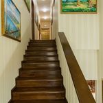 - Мансарда выполнена в виде отдельной квартиры и состоит из ночной зоны со спальней и ванной комнатой, а также гостиной с кухней, столовой и большой гостиной.