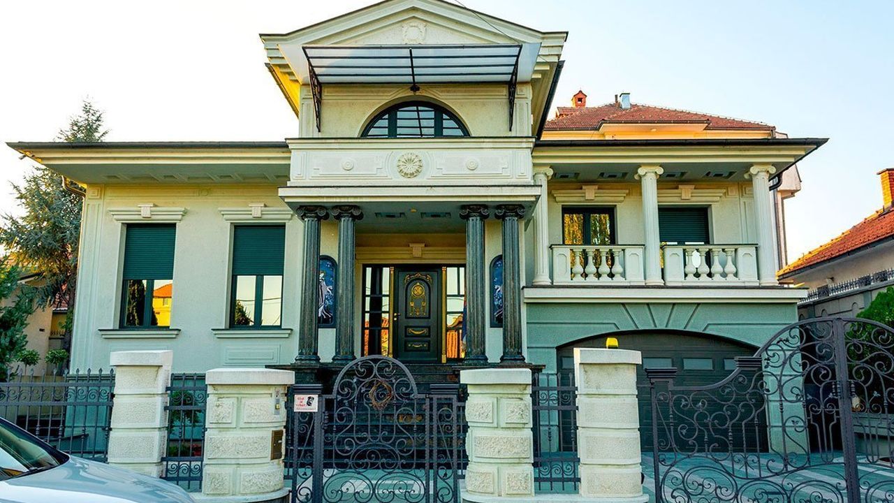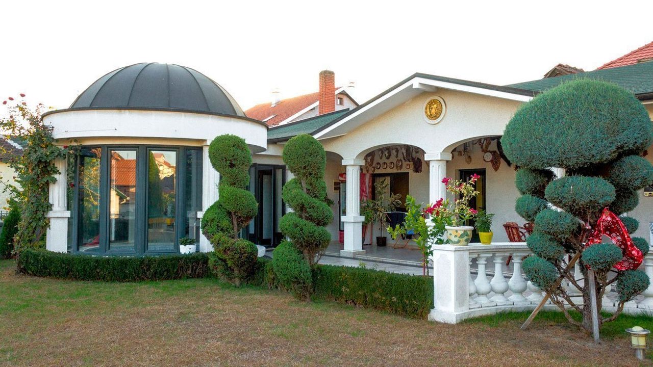 Крыльцо, полы на террасе, полы в доме, лестницы, все подоконники сделаны из итальянского гранита. Колонны на крыльце цельные из итальянского гранита. Водостоки и крыша купола над бассейном из меди.