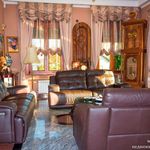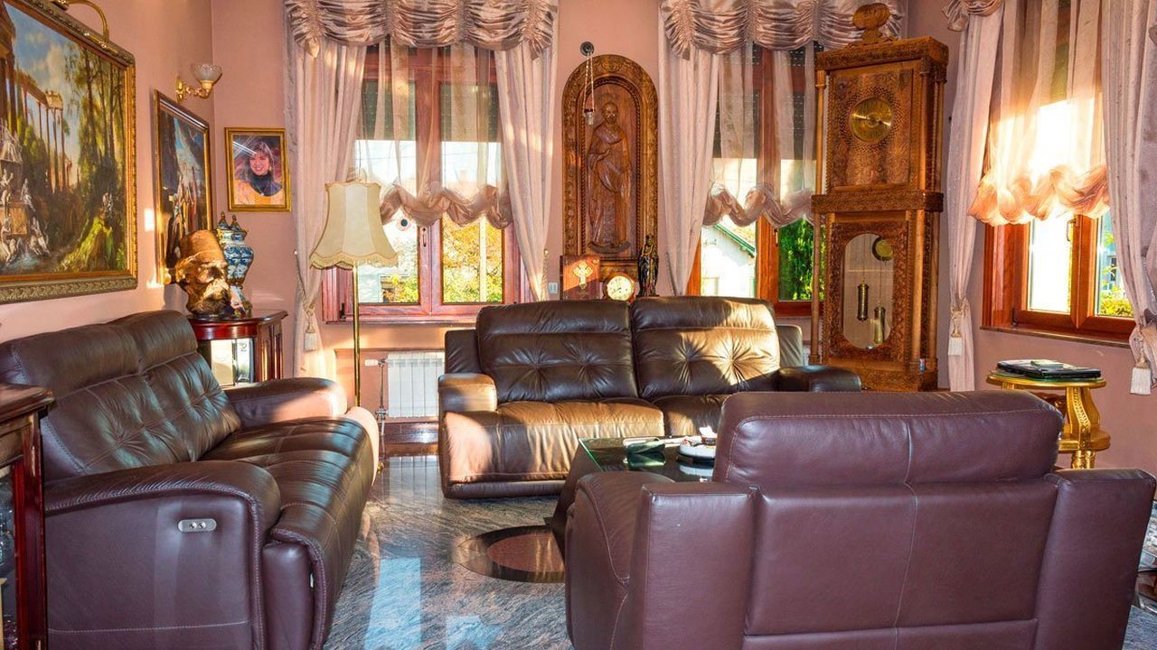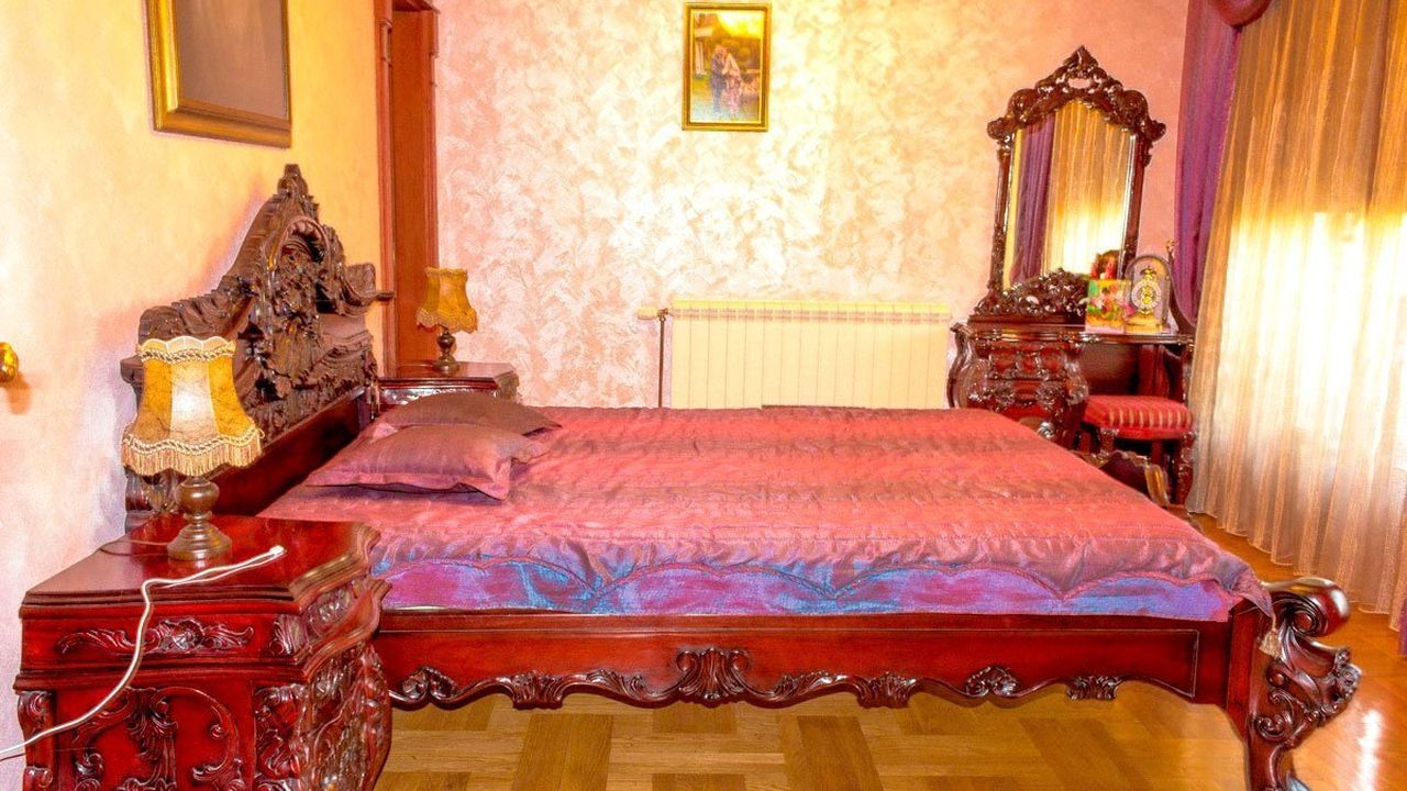 2 этаж: коридор, большая спальня со своей ванной и гардеробной, 3 спальни, 2 ванные, кабинет/библиотека. Три террасы. На полу дубовый паркет. Мебель сделана из массива дерева ручной работы. Диван, 6 стульев и часы в стиле барокко - антиквариат 18 века.
