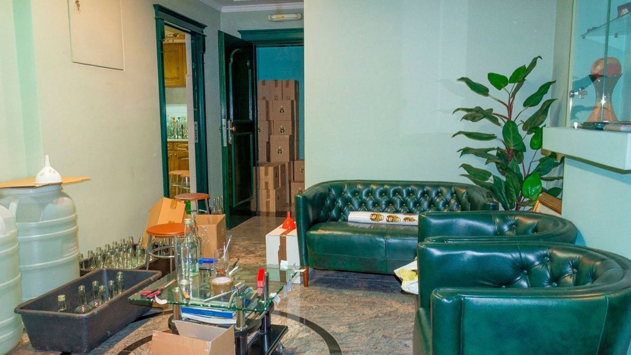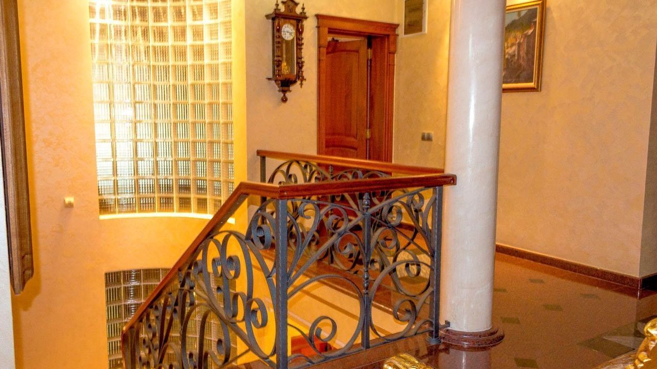 Полуподвал: помещение для прачечной, котельная с тепловым насосом и бойлером для всего дома, оружейная комната и офисное помещение, которое можно использовать под любое назначение. В оружейной комнате вся мебель ручной работы из массива дерева. В офисной части: холл, 4 комнаты, сейфовая комната, ванная. Вход в офисную часть как изнутри дома, так и отдельный вход снаружи дома. Входные двери сейфового типа. На окнах решетки из кованого железа.