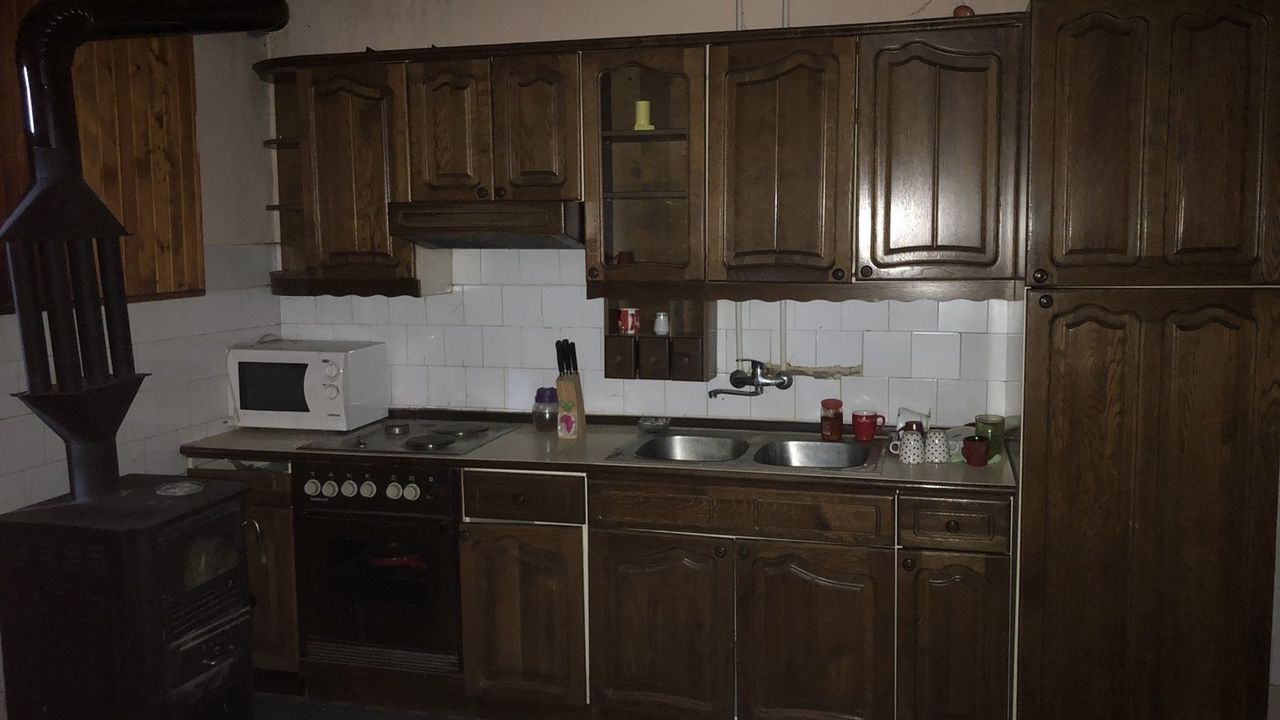 На участке достаточно места для постройки еще одного здания. В доме 3 комнаты, кухня-гостиная, санузел. Кухня и одна комната в отличном состоянии. В двух комнатах есть не большие трещины в штукатурке. Фасад также требует косметического ремонта. Можем связать с местными мастерами.