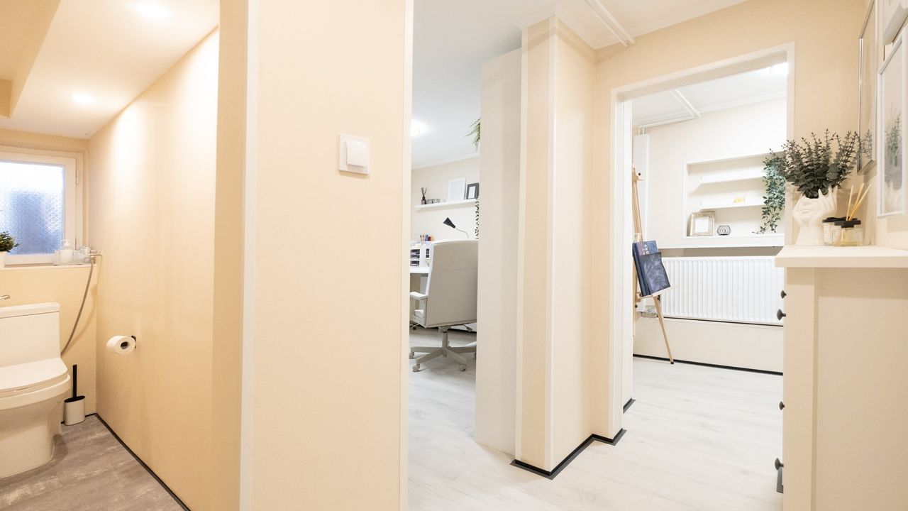 Обустроенное подвальное помещение площадью 20 м2 идеально подходит для домашнего офиса, творческой студии или личного рабочего пространства.