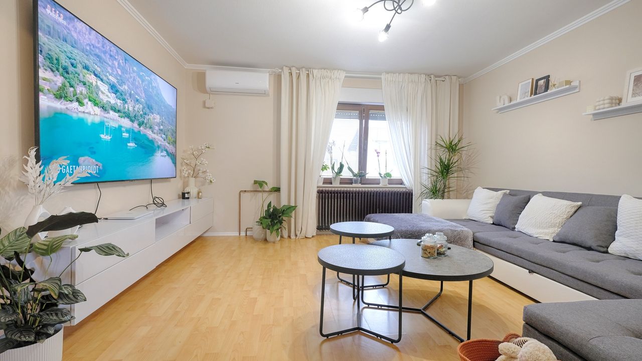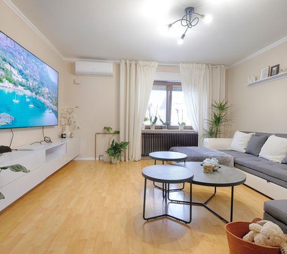 Квартира расположена в тихом и зеленом районе, всего в нескольких шагах от всей необходимой инфраструктуры: магазинов, школ и общественного транспорта.