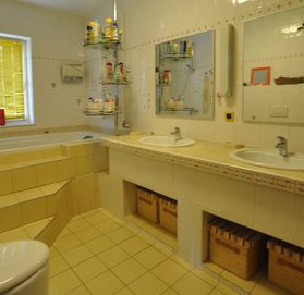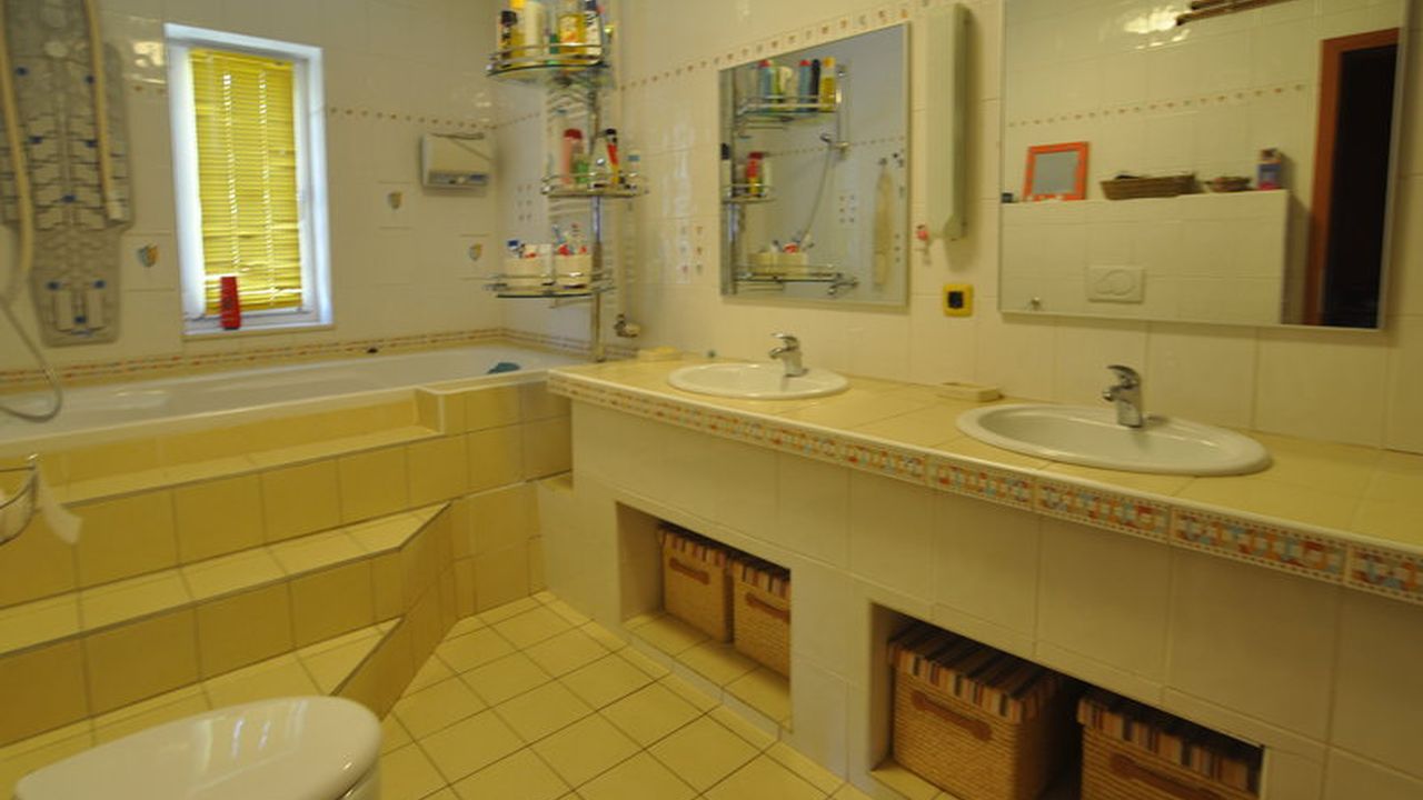 In Notranjih Goricah detached house with 304,50 sqm of total area and 708 sqm of plot. The house was built in 2003 and comprises on the ground floor; entrance hall with stairc, large bathroom, kitchen and dining room and extor to the terrace and garden, office, storage room, fitnes room and garage. Upstairs are three bedrooms and an unfinished bahtroom.Above the garage is another kitchen with a living room, two bedrooms, bathroom and storage room. Welcome to visit. (P3626)