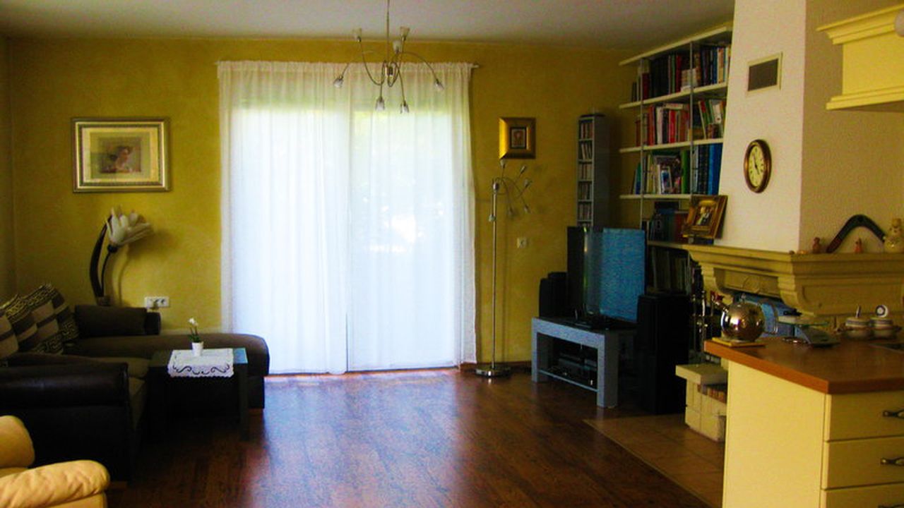 On Krtina nice semi-detached house. The house has on ground floor, large living room area, which consists a kitchen (fully furnished), dining room and living room with fireplace, where is the exit to the spacious terrace and a very nice garden which is fully fenced and suitable for children (it also has a play hut). On the ground floor is a toilet with shower, spacious garage utility. On the first floor there is a large new bathroom with tub, shower - sauna, two washbasins and toilet. In addition are the two nice children's room and large bedroom with an extra room currently used as a walk-in closet. A bedroom has an exit to two balconies. The house has been carefully maintained and has a very low monthly costs average about 200 EUR per month. The house has a built-in alarm system, internet and TV are currently connected to T2. Worth a visit and purchase, very good price. Near AC connector to Ljubljana 15 minutes by car. The garage has space for one car and wheels, etc., Outside there are two parking spaces next to the house. Sunny location! (P3370)