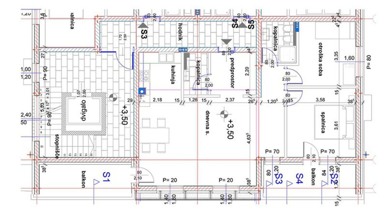 Жилая площадь трехкомнатной квартиры на первом этаже - 76 м2, вместе два балкона - 8,3 м2. Кладовка в подвале 4,8 м2. Квартире принадлежит два парковочных места, одно в подвале гаража и одно перед зданием.