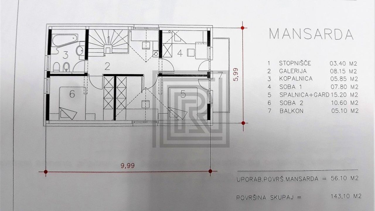 Мансарда: главная спальня с гардеробной, две детских, ванная комната и балкон.