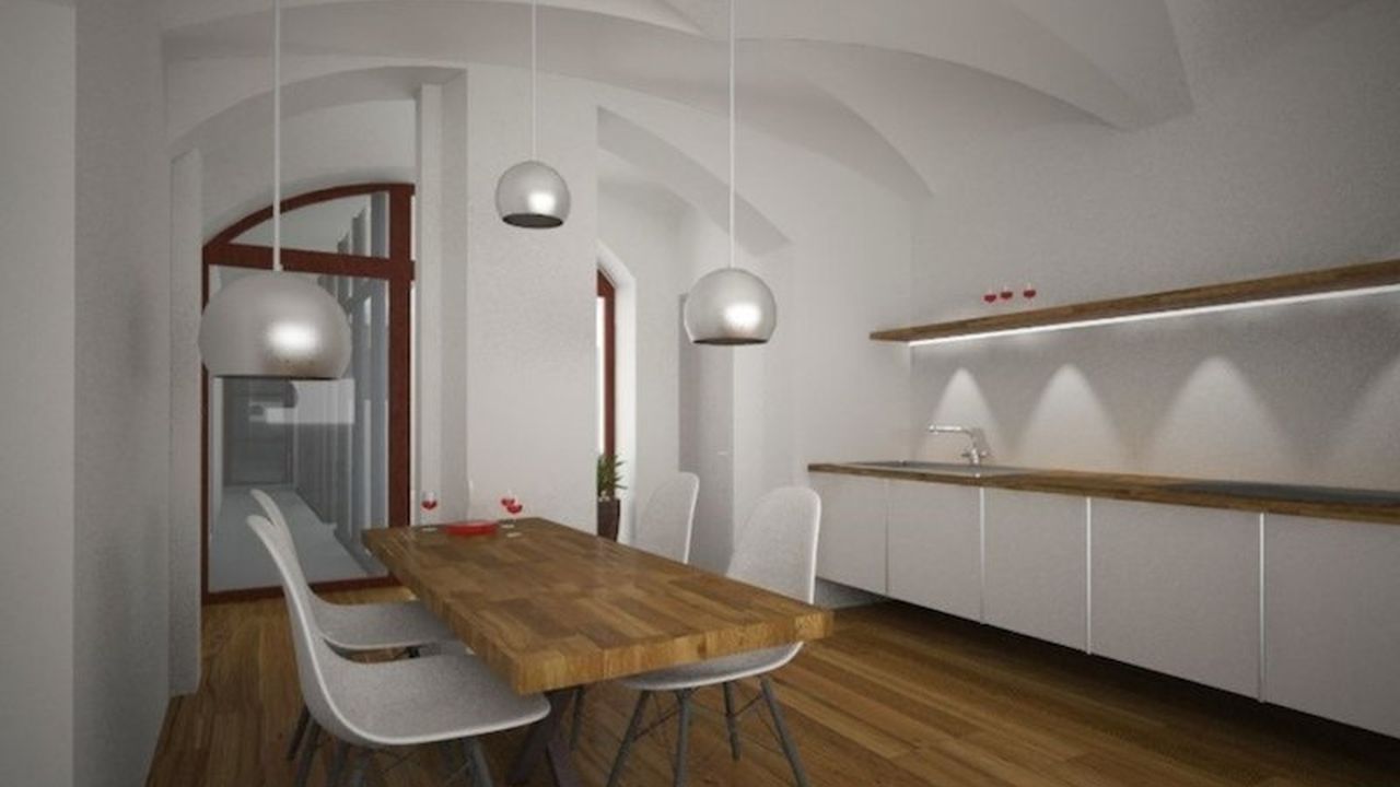 Four bedroom apartment with terrace and elevator in the heart of the old part of Ljubljana in a Baroque building of the 16th century. In 2018, the building underwent major and quality repairs: a new facade, a new roof, balconies, courtyard, arcade corridors, renovated stairs, entrance to the building.