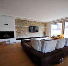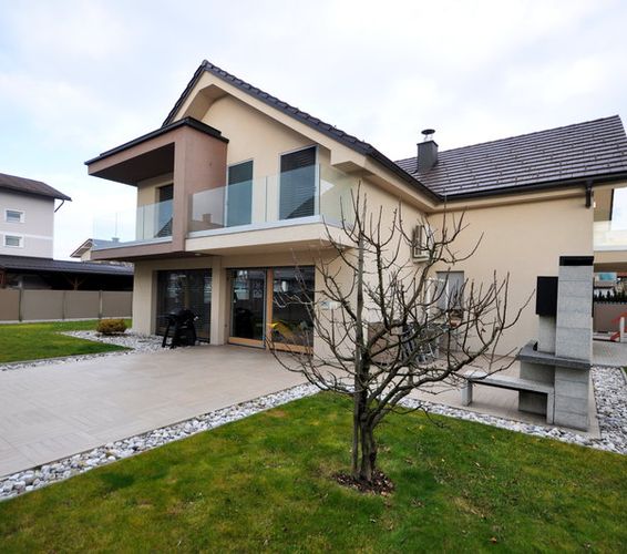 On Galjevica; high-standard house (P + 1), which was built in 2008. The house is situated in a quiet and sunny location near green spaces and shopping center Rudnik. The house has a modern design and all the customed equipment. The ground floor comprises a large entrance hall with wardrobes, utility room, staircase, open and airy living area (kitchen with dining room and living room with wood burning fireplace), sauna, toilet, pantry and a wonderful wine cellar. All rooms are extremely bright and airy. From the living room area there is an exit to the garden. First floor comprises an entrance hall, three bedrooms with balcony, large bedroom with dressing room and en suite bathroom and a utility room. Near the house there are spacious garage and a storage. The house is air conditioned, video controlled, most of the rooms have floor heating. The house provides an automatic watering of the grass on the garden. All the necessary nfrastructure nearby - kindergarten, school, shops, bus station, etc. You are welcome to visit!