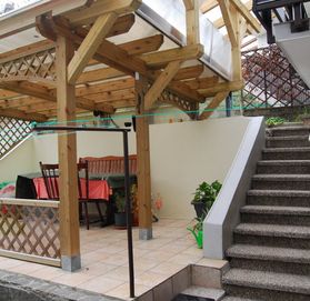 In Medvode in a peaceful location, two three bedroom apartments, one measuring 108.2 sqm (three bedroom) and the other studio apartment measuring 41sqm with balcony. Property has a garden, 89 sqm, with shed, 9 sqm. Studio can be used as a special housing unit with separate entrance, or as an integral part of the second apartment. The building was constructed in 1973, all plumbing fixtures are renovated, new windows were installed in 2003. The rooms are air conditioned. Apartments can not be sold separately, but only as a whole unit.