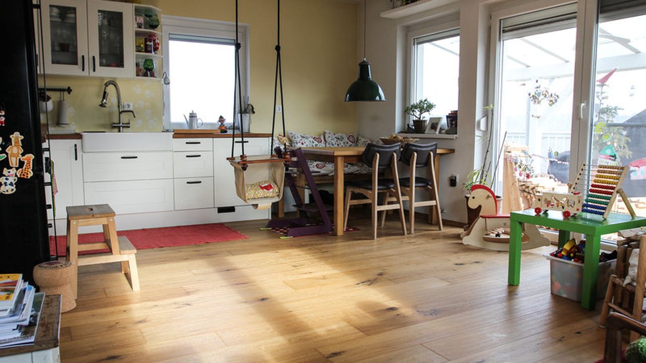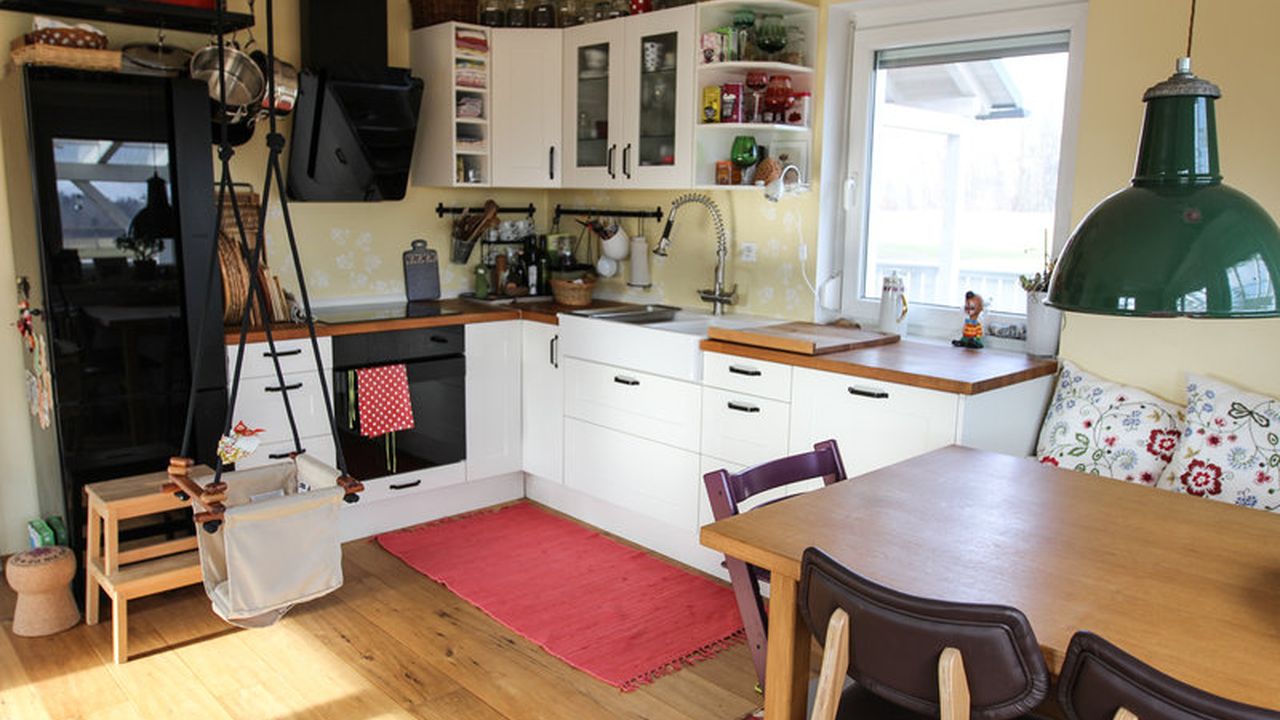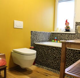 The house has a very functional floor plan. The ground floor includes: bathroom with bath, lounge with kitchen and living room with exit to the covered terrace, which wonderfully connects the interior with nature. The upper floor comprises 3 separate bedrooms and a bathroom with a rain-shower.