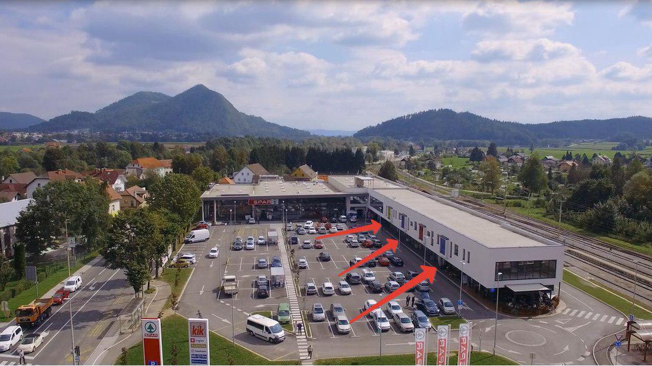Помещение располагается в Любляне, на первом этаже абсолютно нового торгового центра (сдан в 2015 году), основным арендатором которого является Spar (нидерландская сеть магазинов-супермаркетов со штаб-квартирой в Амстердаме).