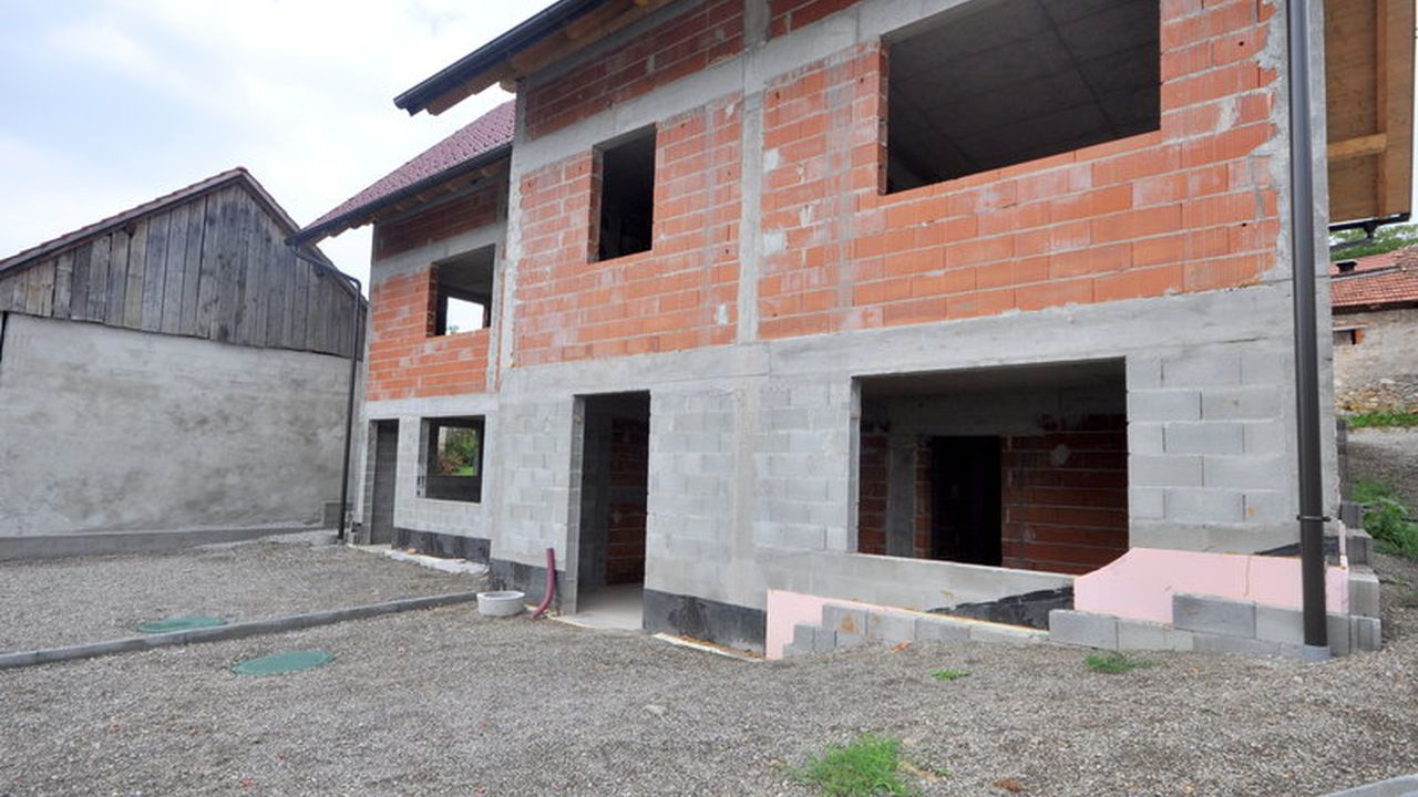 In Pijava Gorica, a new larger unit ofa twin house with a net living area of 181m2 (210m2 gross) and 200m2 of a plot. The house consists of a three floors of the same size, each of 70,21 m2. Floor plan provides larger room for the basemen; on the ground floor a hallway, toilet and living room with kitchen and access to the patio and a connecting corridor. On the first floor there are three comfortable bedrooms and a bathroom with a bath. Possibility to park three cars on the paved area in front of the house. The house is located in a village of houses in a quiet and green setting with quick access to the city. (P2933)