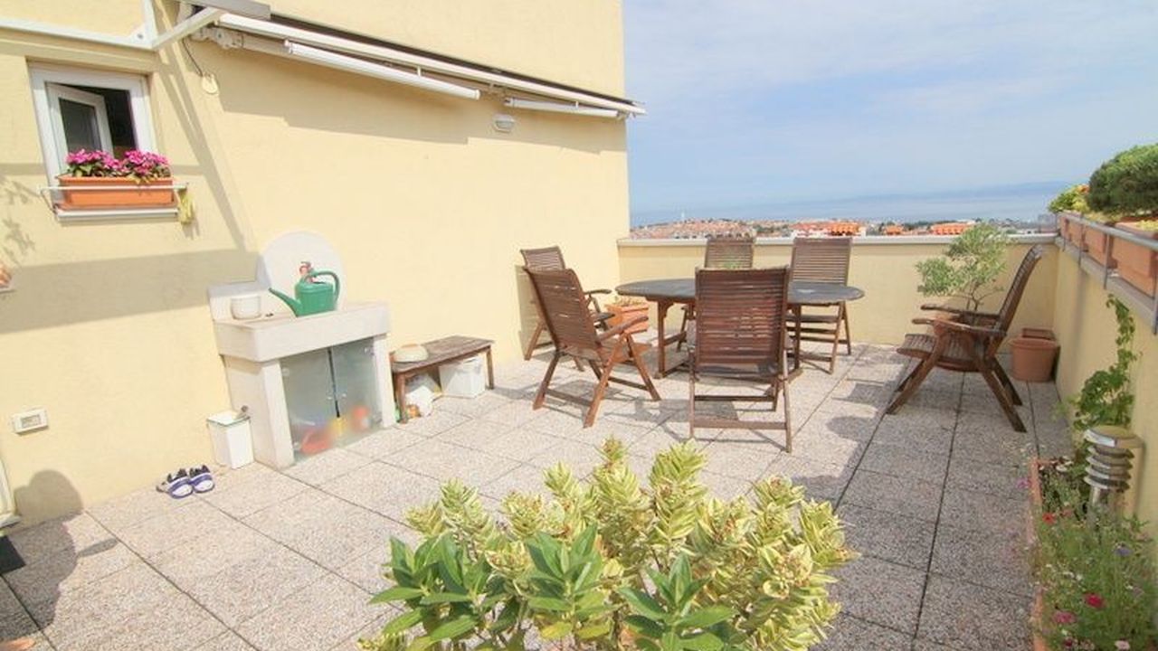 Дуплекс в Ливаде. 142,8 м2 общая площадь квартиры в которой 97,10 м2 жилой площади, 6,6 м2 служебных помещений, закрытый балкон площадью 8,7 м2 и 28м2 террасы. Из квартиры, балкона и террасы открывается красивый, открытый вид на море и город. Жильцы квартиры имеют право на два парковочных места перед домом. Квартира состоит из двух спален, гостиная, кухня, балкон, подсобное помещение и ванная комната. На втором этаже еще одна ванная комната, спальня и терраса. Центральное отопление на жидком газе. Возможна установка камина. Солнечно, западное местоположение, удобно оборудованное и качественно построенав. 2002 году.