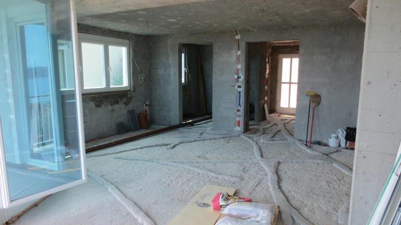 Объект находится в IV фазе строительства, которая включает в себя: перегородки, внутренние лестницы, теплоизоляцию фасада, электрические установки, установку окон, входных и балконных дверей. Также выполнены все наружные работы.