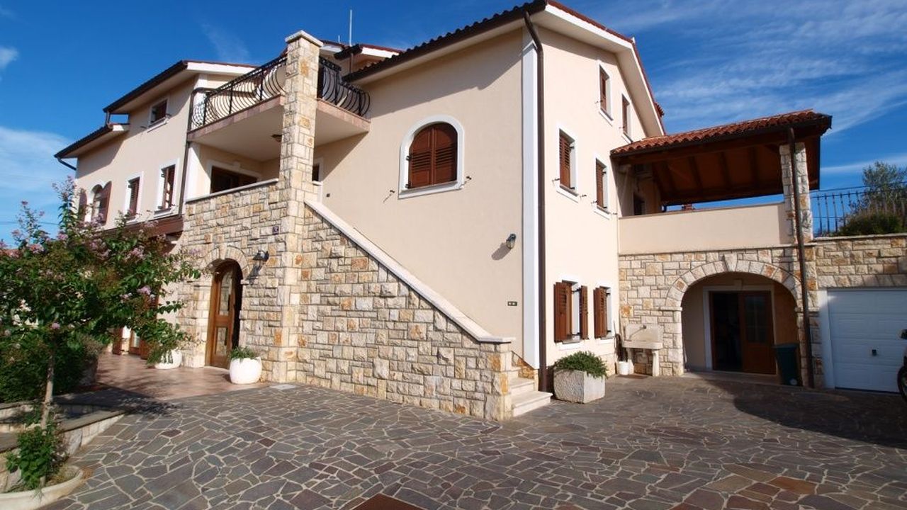 Дом в Шкофие, Копер. 473,4 м2 общей площади в трехэтажном доме, первый этаж, . это гараж и престижная четырех комнатная квартира (4 спальни) с выходом в красивый сад и во двор. Второй этаж имеет отдельные входы в две другие двухуровневые 4-х комнатные квартиры, каждая из которых имеет выходы на отдельные террасы и в сад. Дом стоит на участке 1.223m2 в спокойной тупиковой улице, всего в 5км от города Копер и Триест. Дом очень качественно построен, хорошо изолирован, без видимых дефектов и обложен с красивым камнем Истрии. Во дворе есть парковка для шести автомобилей. Все подключения, центральное отопление, камин, кондиционер. Построен в 2004 году.