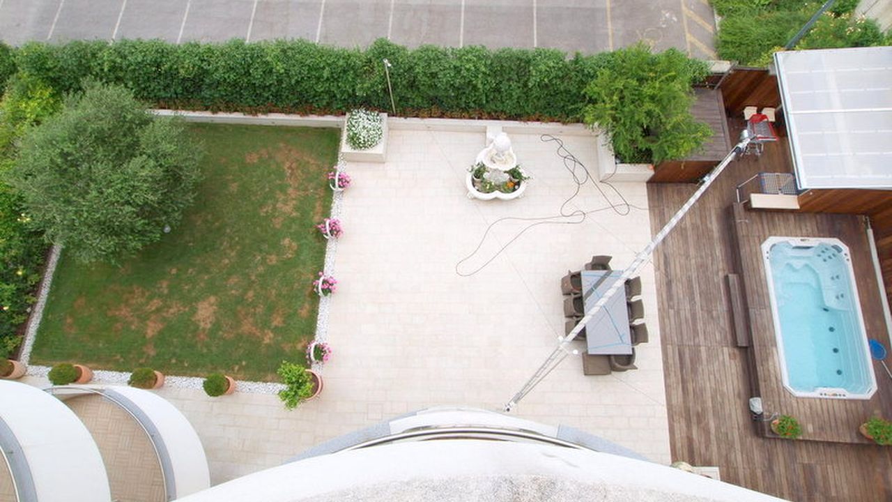 Элитный жилой комплекс, построенный в 2005 году, который называется Rezidenca park Lucija. На огороженом первом этаже расположены роскошные апартаменты в общей сложности 411 м2 жилой площади. Квартира была сформирована путем объединения двух отдельных квартир, и включает в себя две гостиные, две кухни, 4 спальни, 2 ванные, 2 санузла, 5 парковочных мест в гараже, кладовую 15 м2 и 200 м2 сада, где находится бассейн с джакузи, противотоком, летней кухней, большая терраса, сауна и зеленый сад с красивым 100-летним оливковым деревом. Из гостиной прекрасный открытый вид на природу. Квартира качественной постройки со вкусом обустроена, в доме имеется консьерж, велнесс, фитнес, кардиолог, уборка, кафе, бар, парикмахерская, лифт), центральное (отдельное) отопление и охлаждение регулируется с помощью конвекторов. Квартира находится всего в 650 метрах от пристани для яхт и моря.