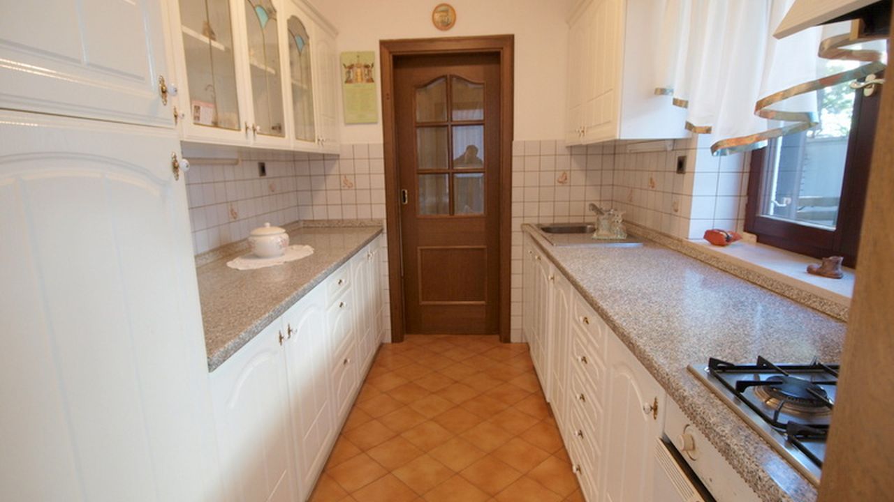 Жилой 3-х этажный дом 1993 года постройки. На первом этаже расположен гараж на две машины, большая кладовая, котельная, прихожая и квартира-студия площадью около 25 м2. На втором этаже - большая гостиная, кухня, кладовая, одна небольшая комната и балкон, из кухни есть выход в сад размером около 80 м2 с террасой и летней кухней. На третьем этаже - большая ванная комната и четыре спальни, одна из которых площадью около 30 м2, и большой балкон, с которго открывается прекрасный вид на море. Дом ориентирован на юг, дизельное отопление, камин. Дом стоит на участке 208 м2. 600 м до школы и детского сада, 1 км до моря.