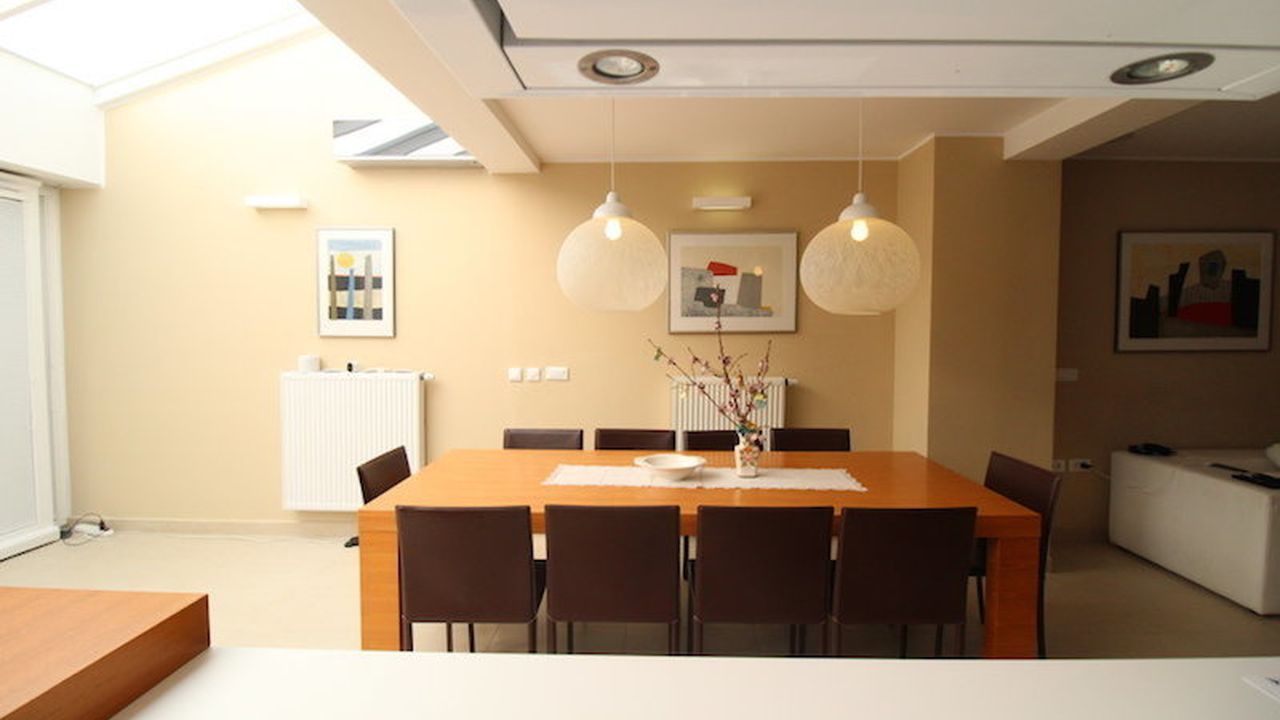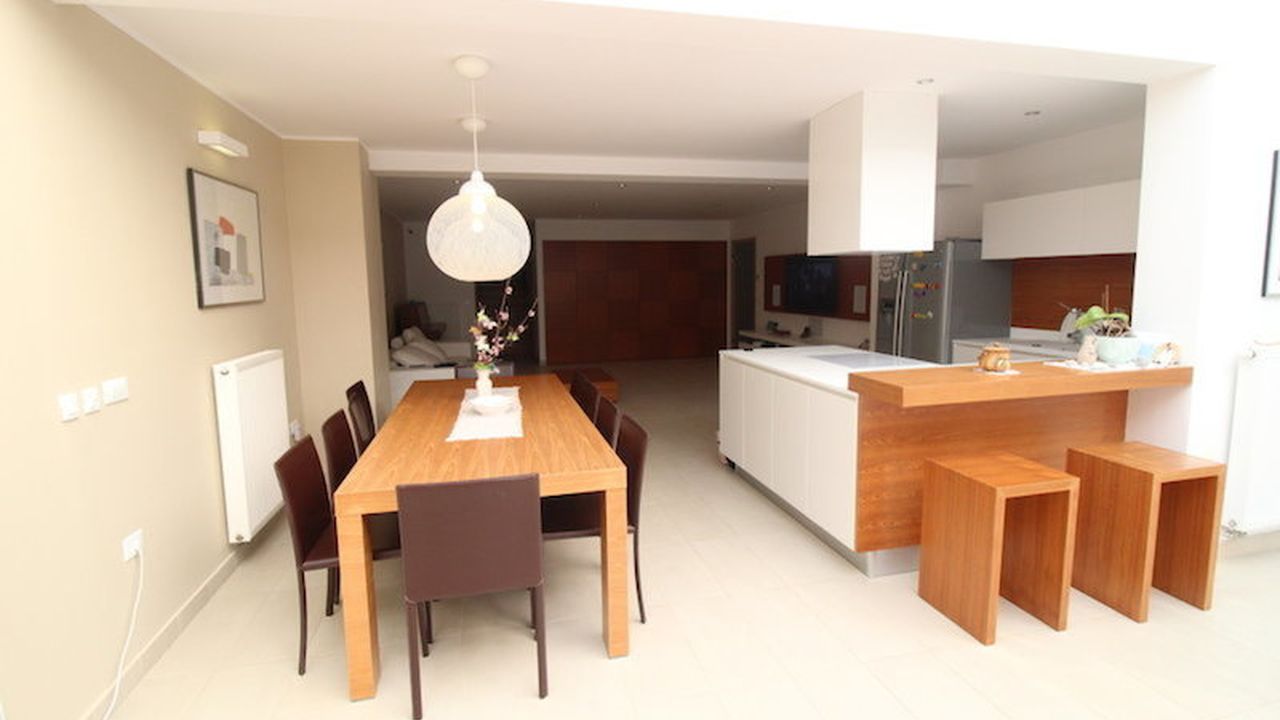 Five-room apartment, duplex in a modern house built in 2010, luxury open plan and many terraces. The apartment has a modern design and provides exceptional functionality. The total area of 414 m2, including 188 m2 of living space, 27 m2 of covered terrace and a plot of 199 m2.