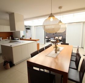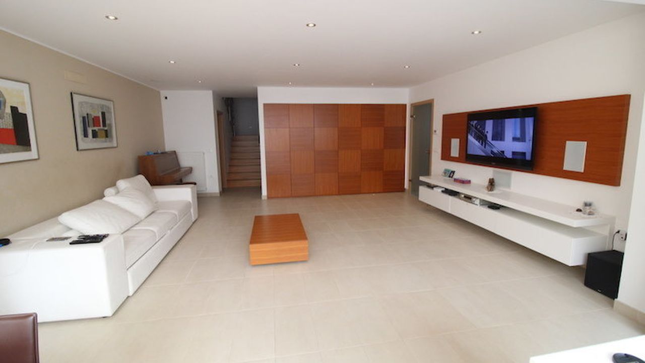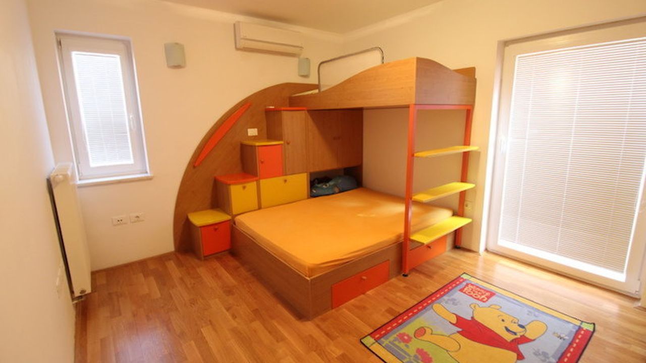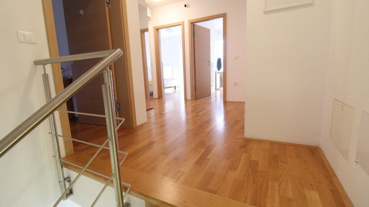 Furniture is custom made with high quality equipment. The floors on the first floor are covered with ceramics (underfloor heating), and on the second floor there is quality parquet. Central heating with electricity. Panoramic windows are protected by electric blinds. The living room has a special sound system.