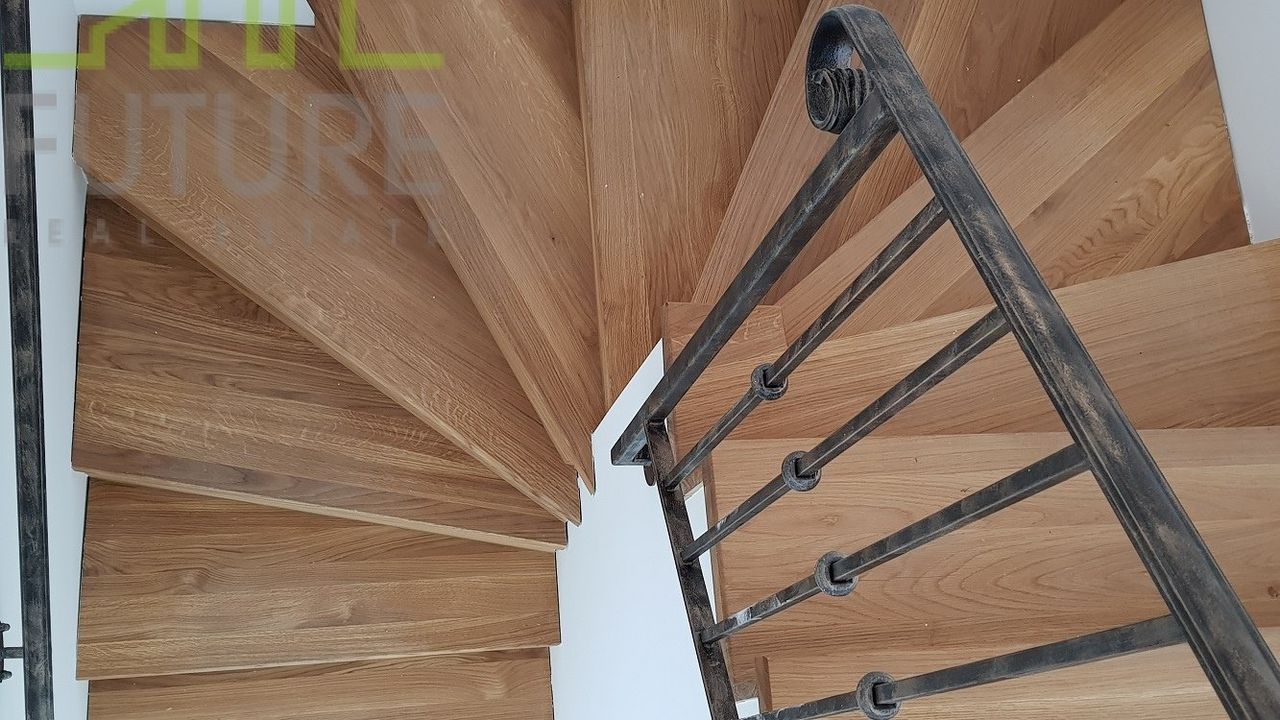 Второй этаж занимают три спальни (главная спальня + 2 детские комнаты), ванная комната с ванной, туалетом и биде, лестница.