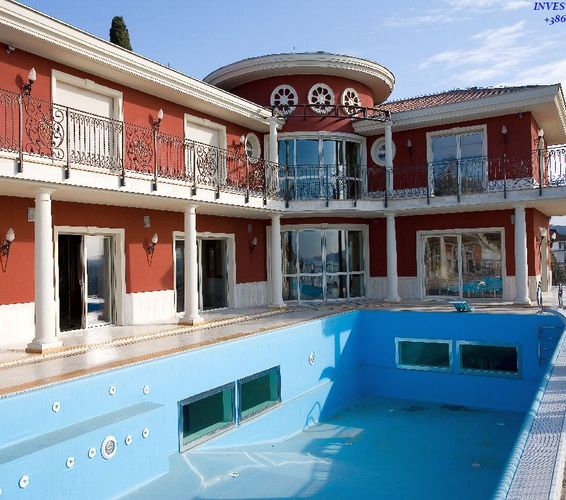 Вилла супер люкс в Порторож. 1.163 м2 жилых и вспомогательных площадей (бани, фитнес, бильярд, кинозал, гараж и две квартиры для гостей). На участке 1.215м2. К зданию относится большой бассейн, дополнительная внешняя ванна с гидромассажем, сауны, фитнес, огромный гараж на 11 машиномест, центральное отопление, система кондиционирования., огромное жилое помещение, красивые террасы и открывающийся прекрасный вид на Пиранский залив из всех окон.Дом имеет утонченную отделку «афреско», золоченые бордюры, мебель изготовлена на заказ.